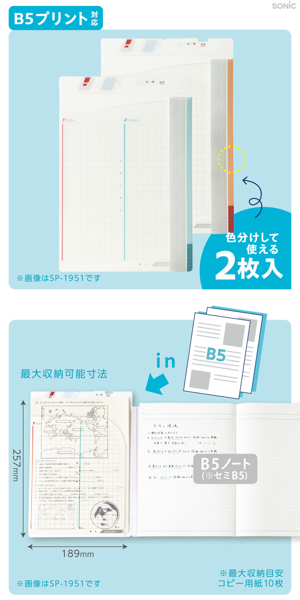 | 対応サイズ | ■B5ノートに貼り付け可能 ■収納できる用紙サイズ:約横18.9×縦25.7(cm)※B5コピー用紙約10枚収納可能 |