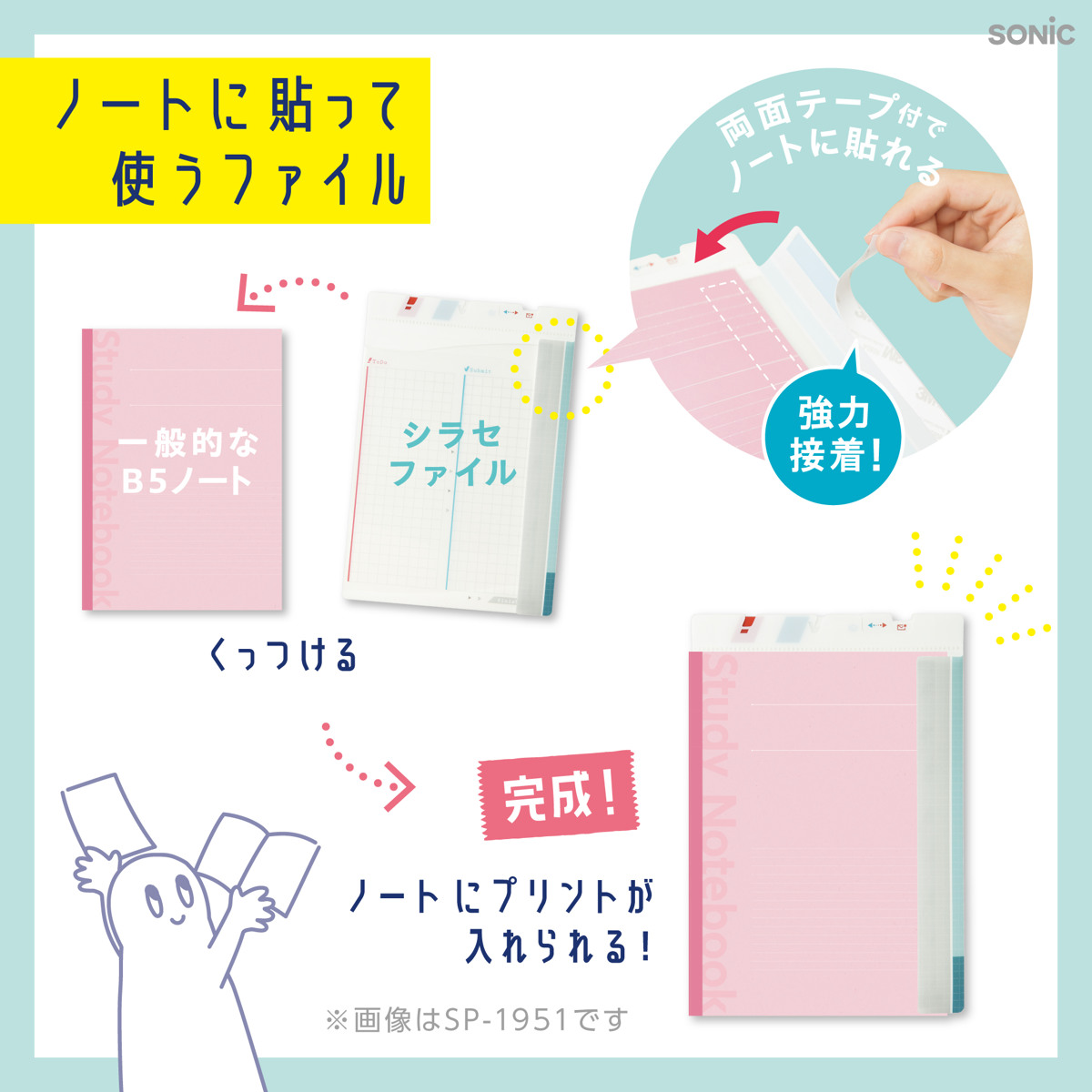ファイル 貼るシラセファイル B5ノート用 2枚入り タスク管理 ( クリアファイル 宿題 課題 プリント テスト勉強 提出物 書類 整理 収納 忘れ物 うっかり防止 文房具 勉強用 小学生 中学生 高校生 大学生 学校 塾 )