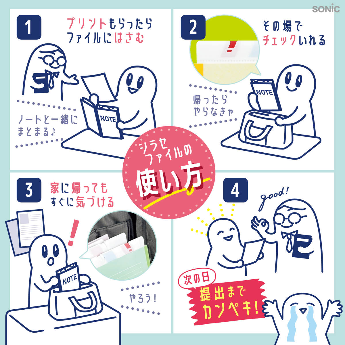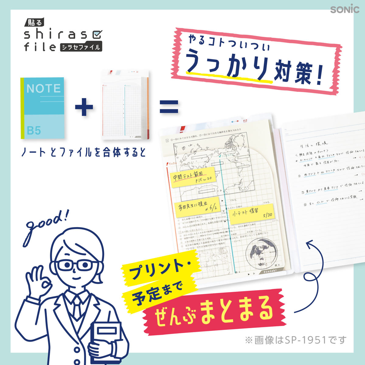 ファイル 貼るシラセファイル B5ノート用 A4プリント対応 2枚入り タスク管理 ( クリアファイル 宿題 課題 プリント テスト勉強 提出物 書類 整理 収納 忘れ物 うっかり防止 文房具 勉強用 小学生 中学生 高校生 大学生 学校 塾 )