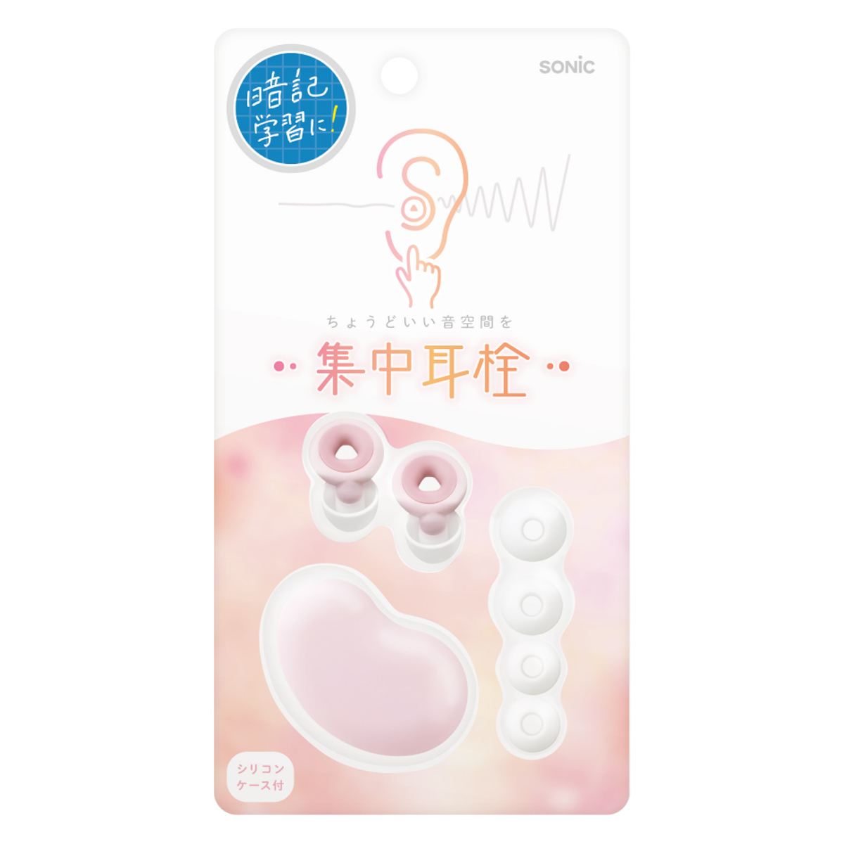 耳栓 集中耳栓 シリコン ケース付き シンプル ( 耳せん おしゃれ 持ち運び 遮音 テスト勉強 資格勉強 受験対策 効率アップ 暗記用 受験 試験 集中 勉強 テスト 文具 文房具 ) 【ピンク】