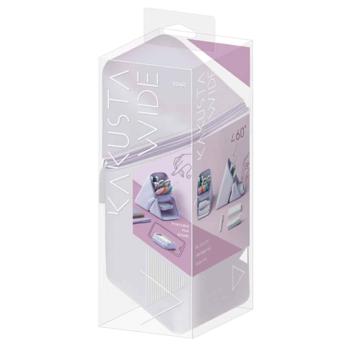 ペンケース ペン立て カクスタ ワイド 引き出し付き 文房具 ペンスタンド ( 筆箱 収納 大容量 シンプル おしゃれ ファスナー 立てる 自立 縦 スリム スタンド 持ち運び コンパクト 文具 オフィス 学校 ) 【バイオレット】
