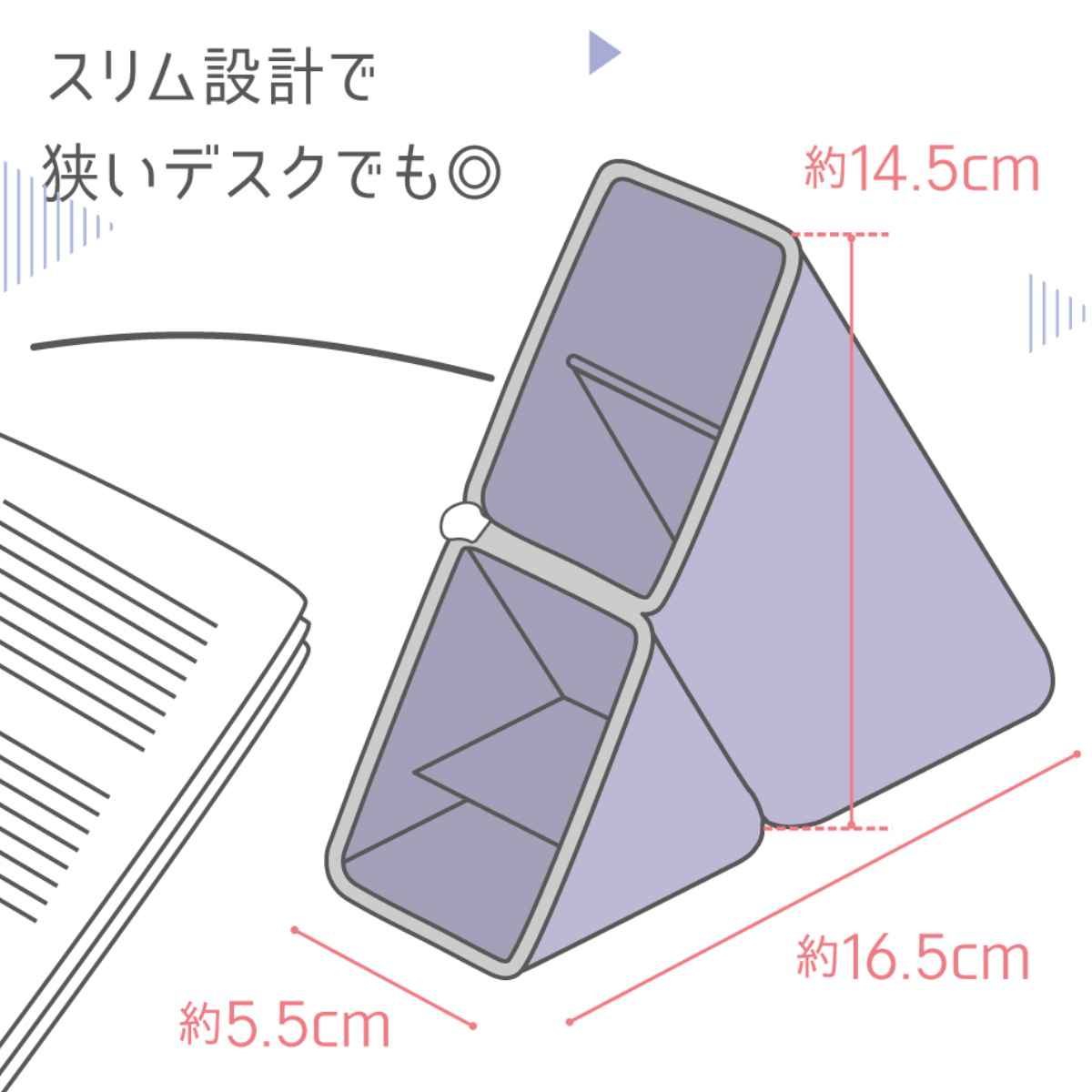 幅約5.5cmとスリムなスタンド式で場所を取らないので文具がバラつかず作業スペースをすっきり確保でき、作業効率もアップします。