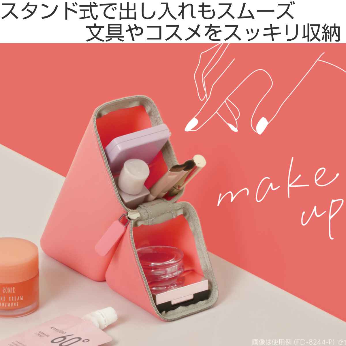 文具はもちろん、コスメ類の整理にも使いいただけます。必要なメイク道具をまとめて持ち運べるので外出先でのメイクポーチとして活躍します。