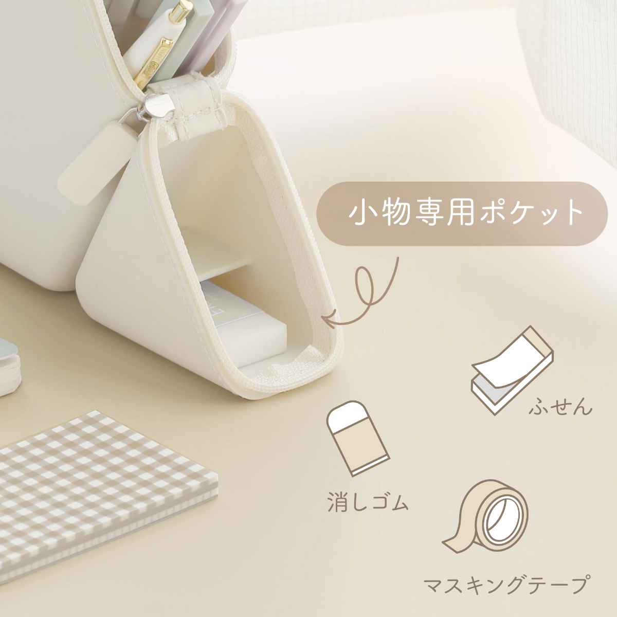 小物専用ポケットが付いているので付箋・消しゴム・修正テープ・マスキングテープなどの小物が底に埋もれず、すぐに取り出せます。