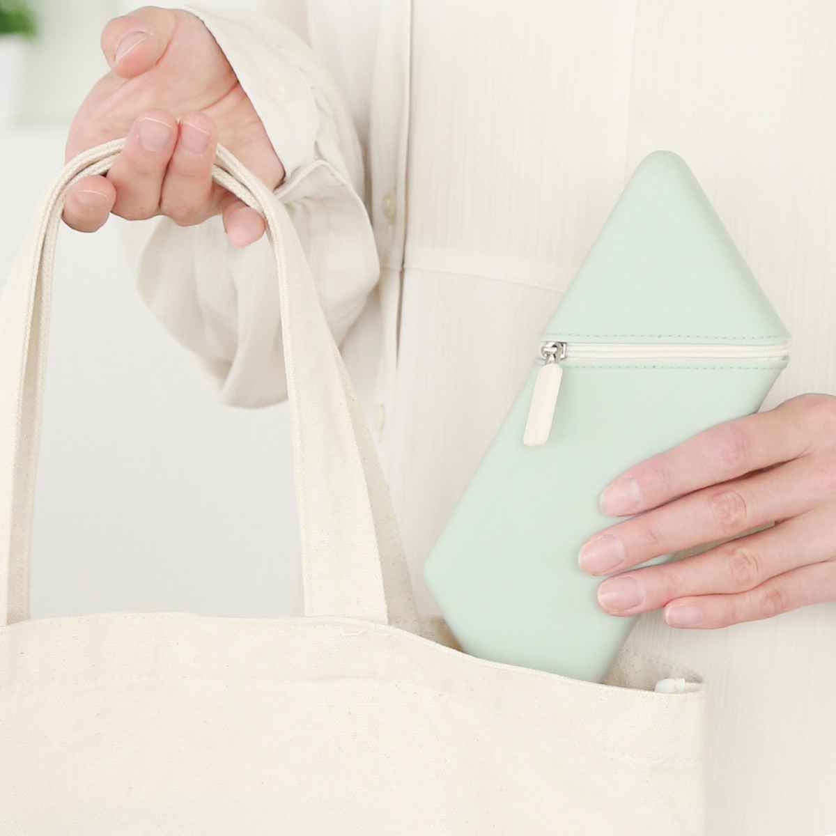 柔らかいシリコン素材を使用しています。表面は汚れやホコリが付きにくいさらさら加工が施されているので毎日使っても清潔に保ちやすく、どこでも気兼ねなく使用できます。