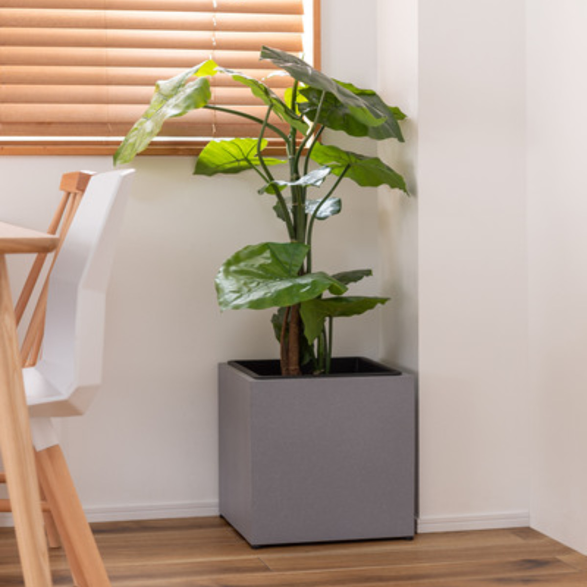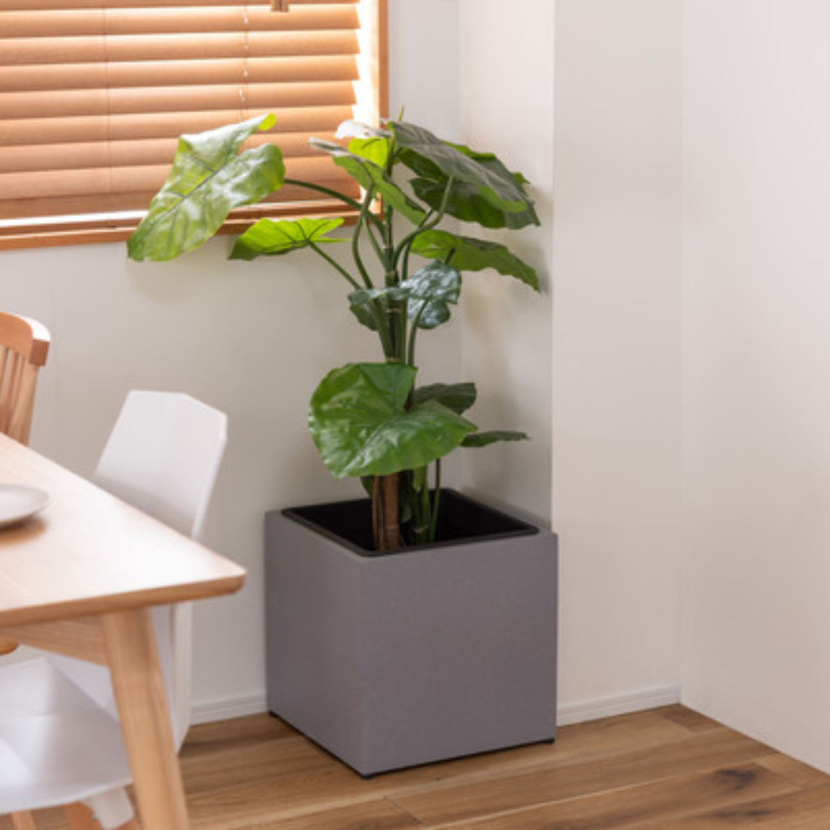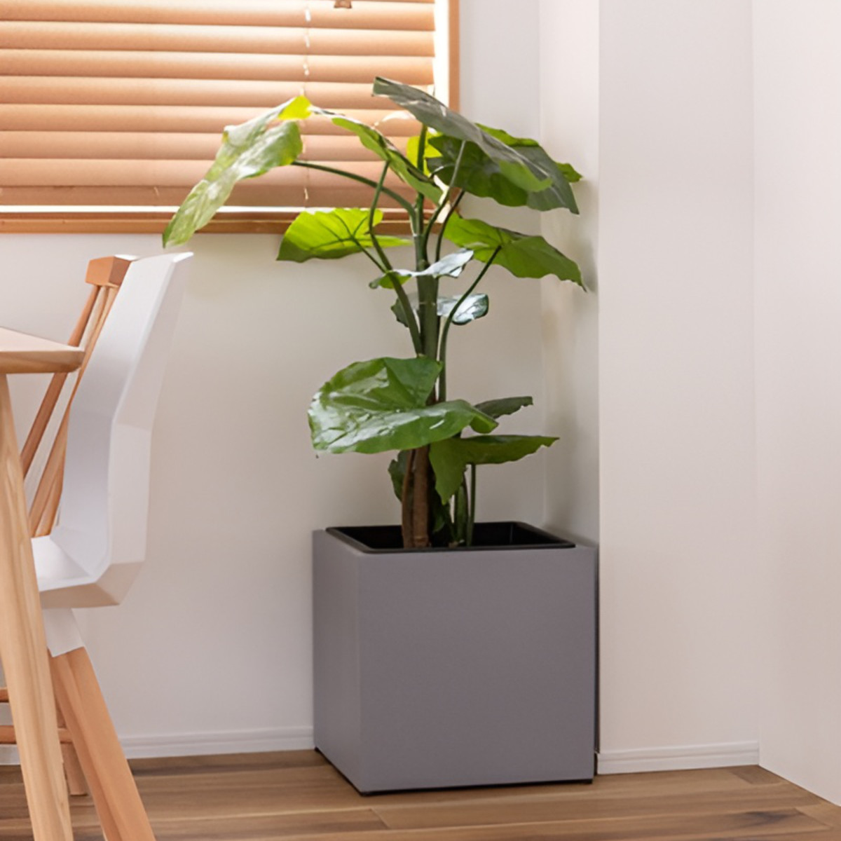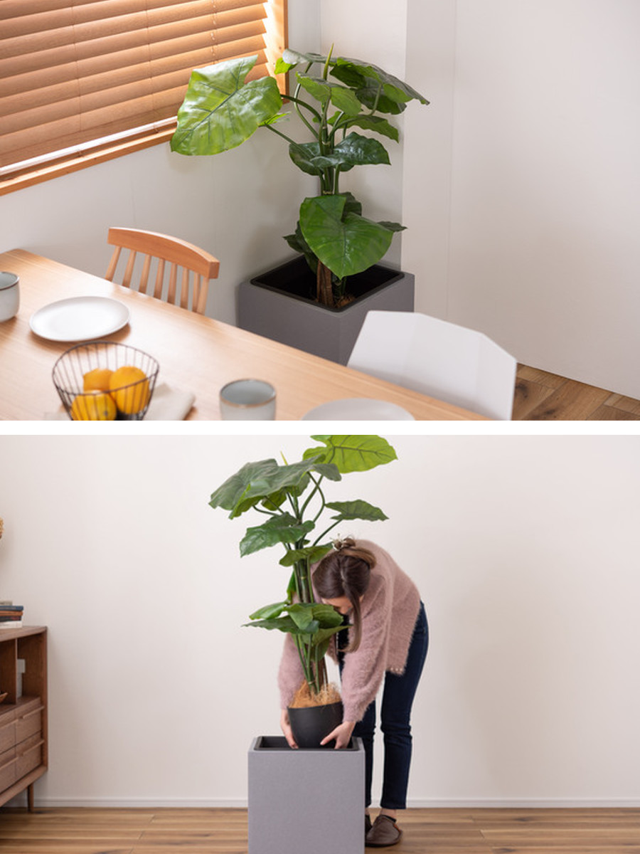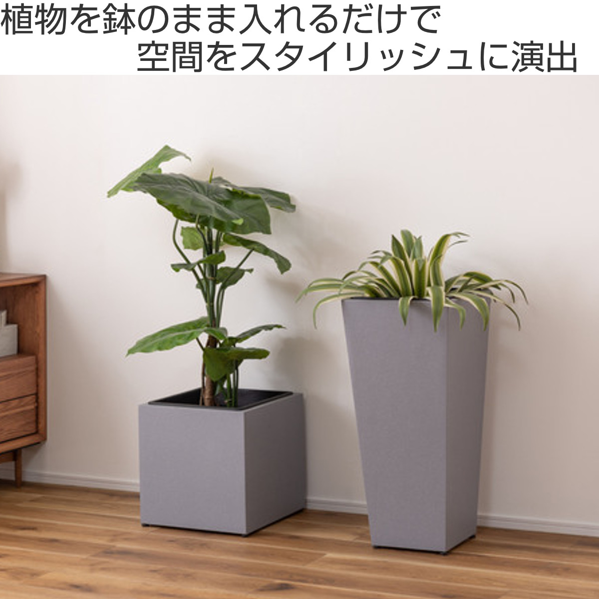 植物を鉢のまま入れるだけで、空間をスタイリッシュに演出できるプランターカバーです。シンプルながら存在感があり、リビングや玄関、書斎、オフィスなど幅広いシーンで活躍します。