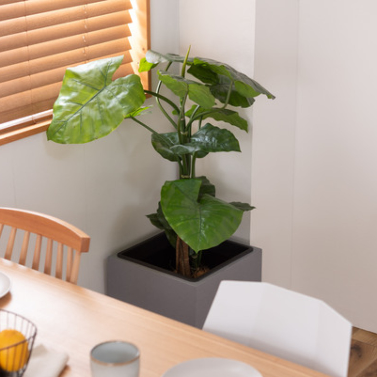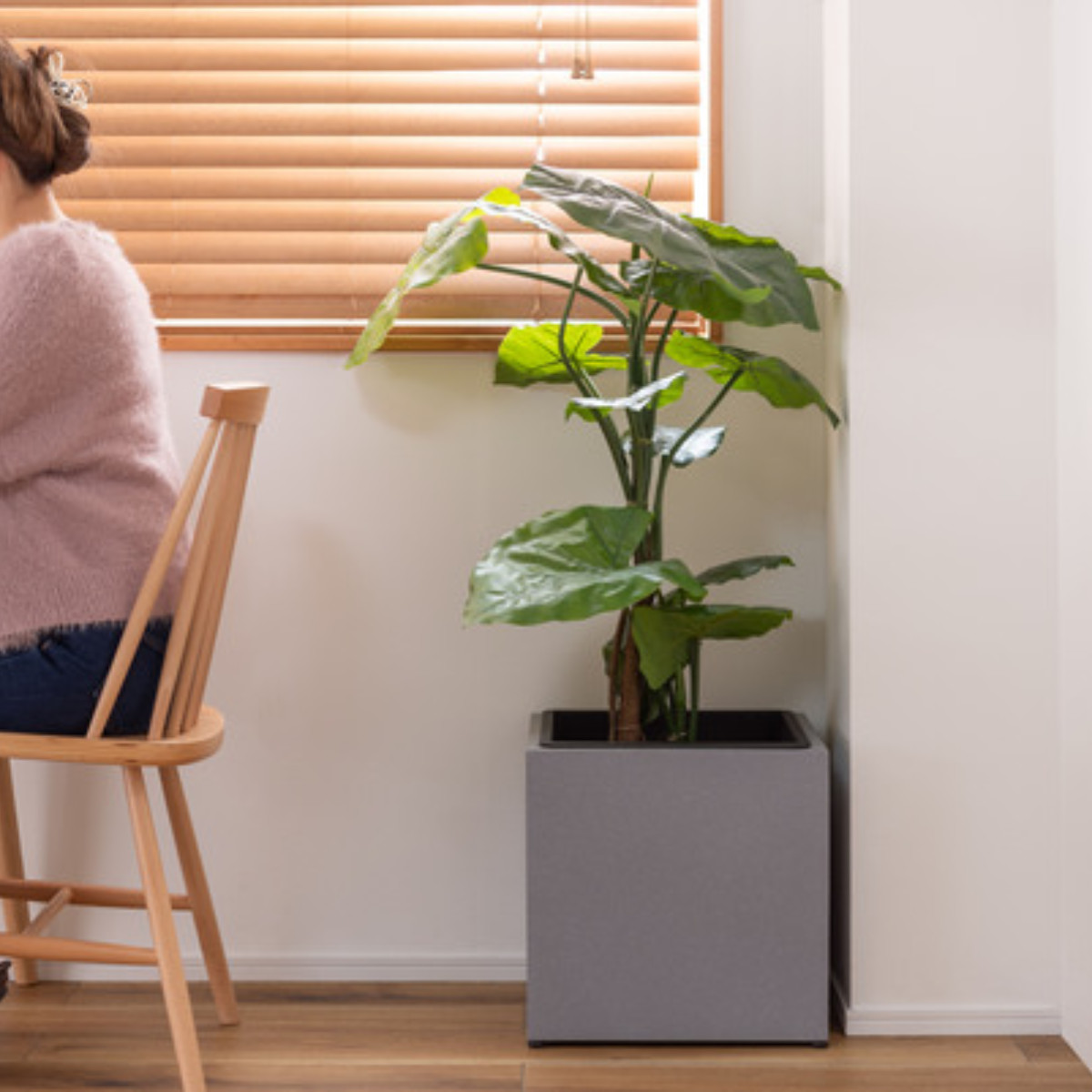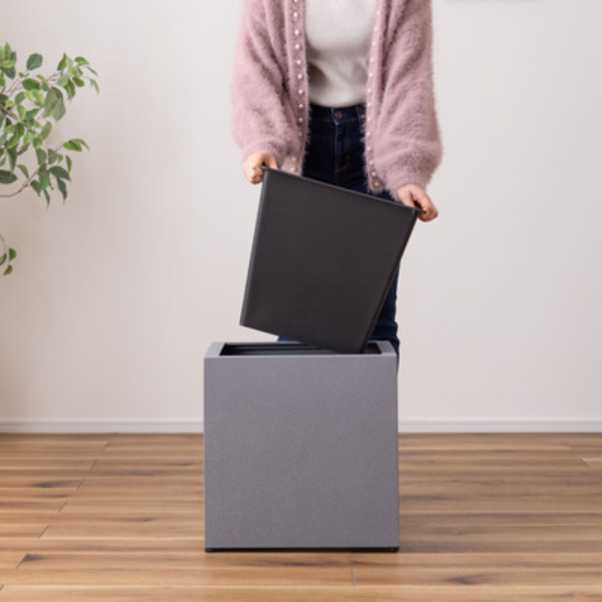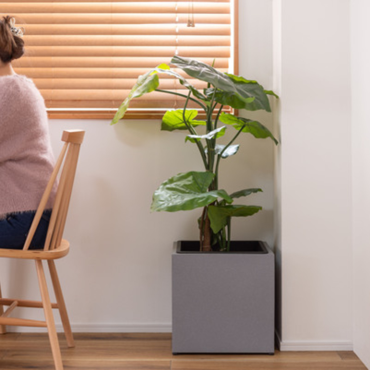 植物を鉢のまま入れるだけで、空間をスタイリッシュに演出できるプランターカバーです。シンプルながら存在感があり、リビングや玄関、書斎、オフィスなど幅広いシーンで活躍します。
