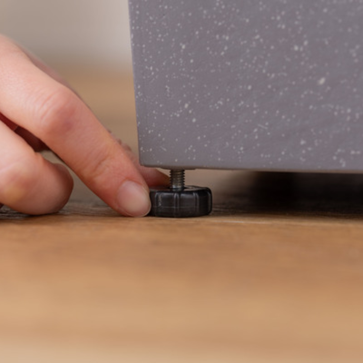 底部にはアジャスターが付いているので、床のがたつきを軽減します。