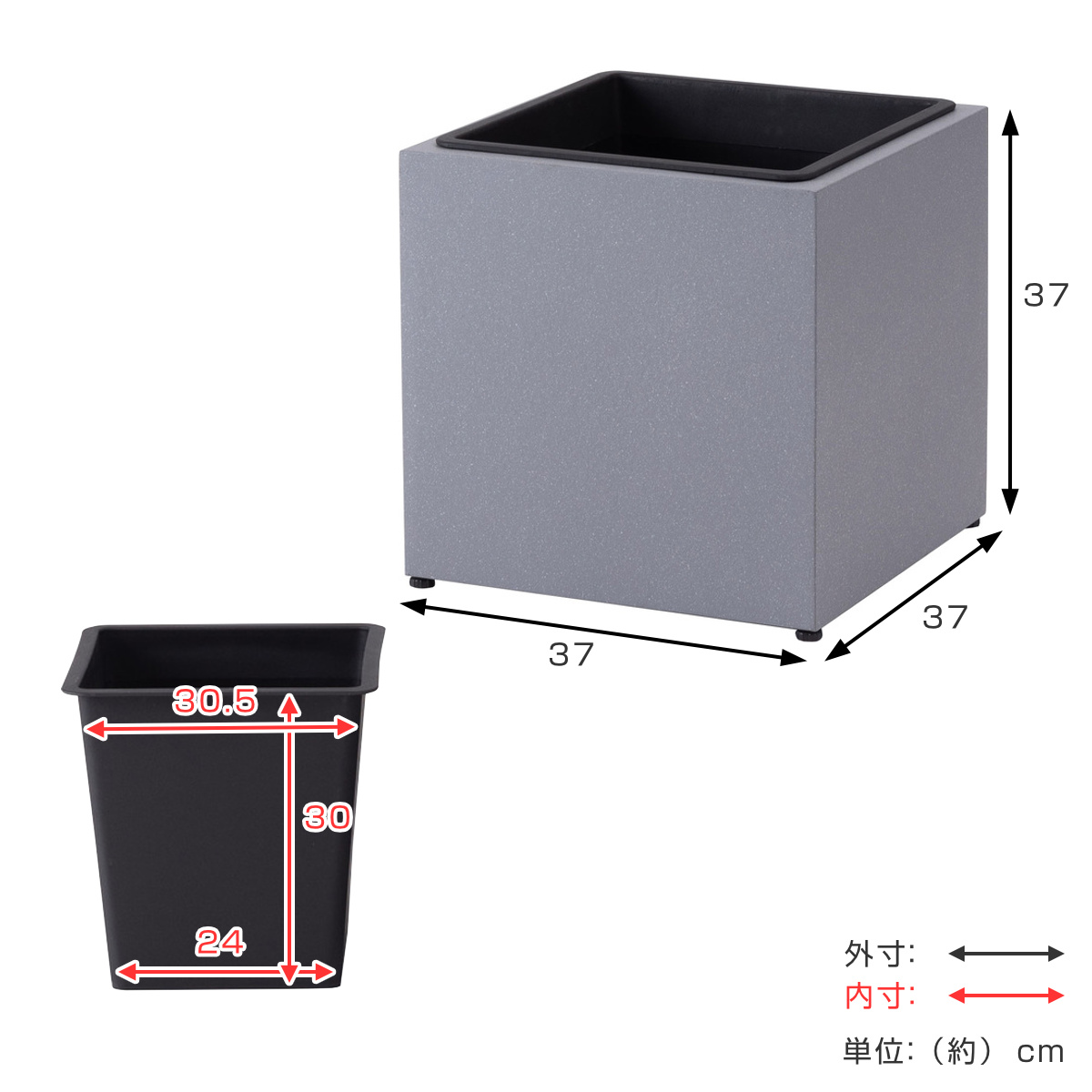 プランター コンクリート調 幅37cm ( プランターカバー スクエア 植木鉢 鉢 屋外 外 家庭菜園 寄せ植え おしゃれ ポット 鉢カバー 鉢植え 屋内 角型 角形 正方形 ポット付き アジェスター付き 花 )