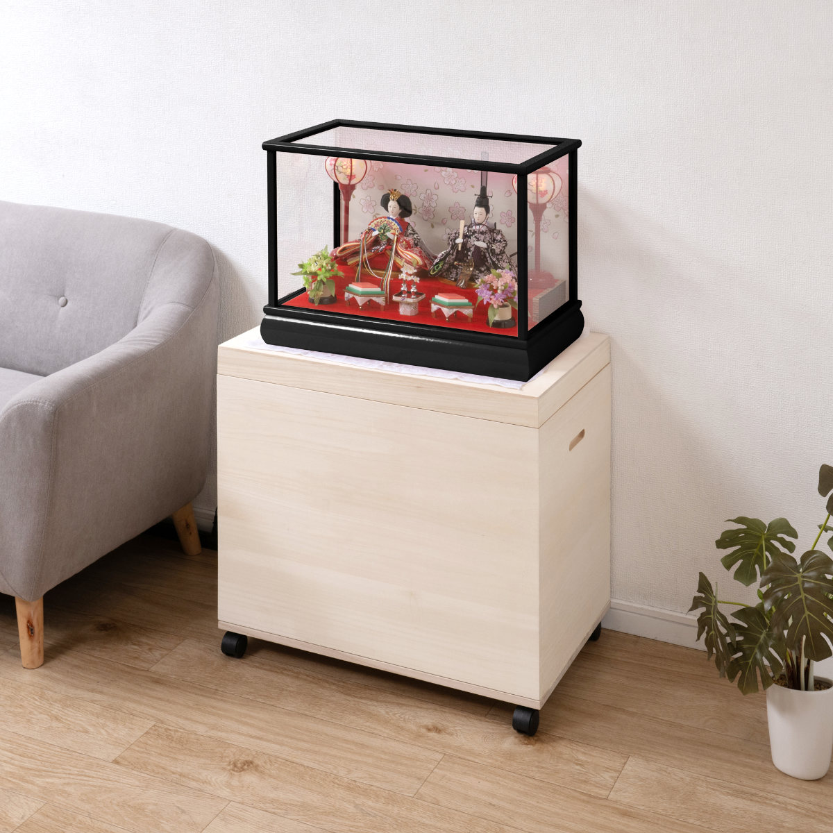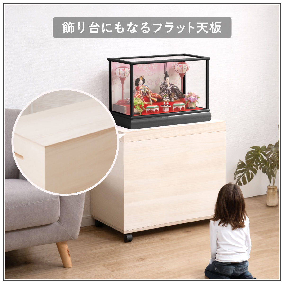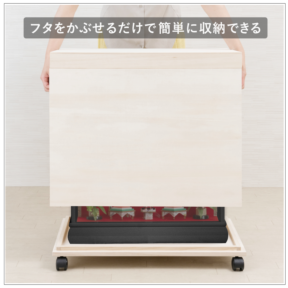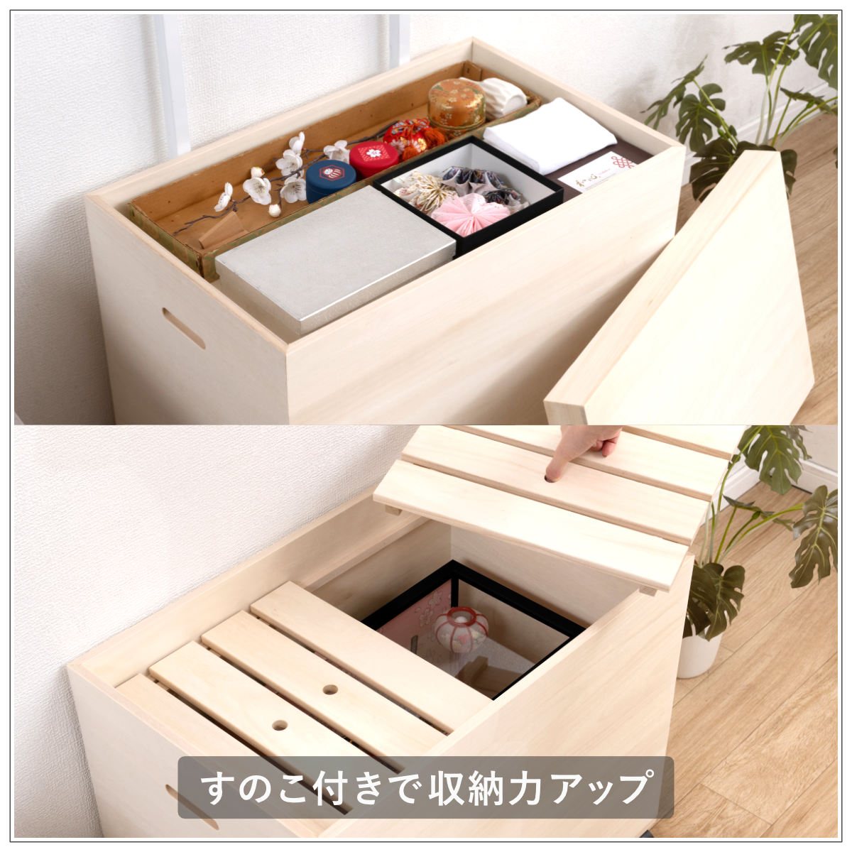 高さ60.5cmの商品は、上部に取り外しのできるすのこが付属しています。お雛さまの御小道具や思い出の小物などを一緒に収納できます。