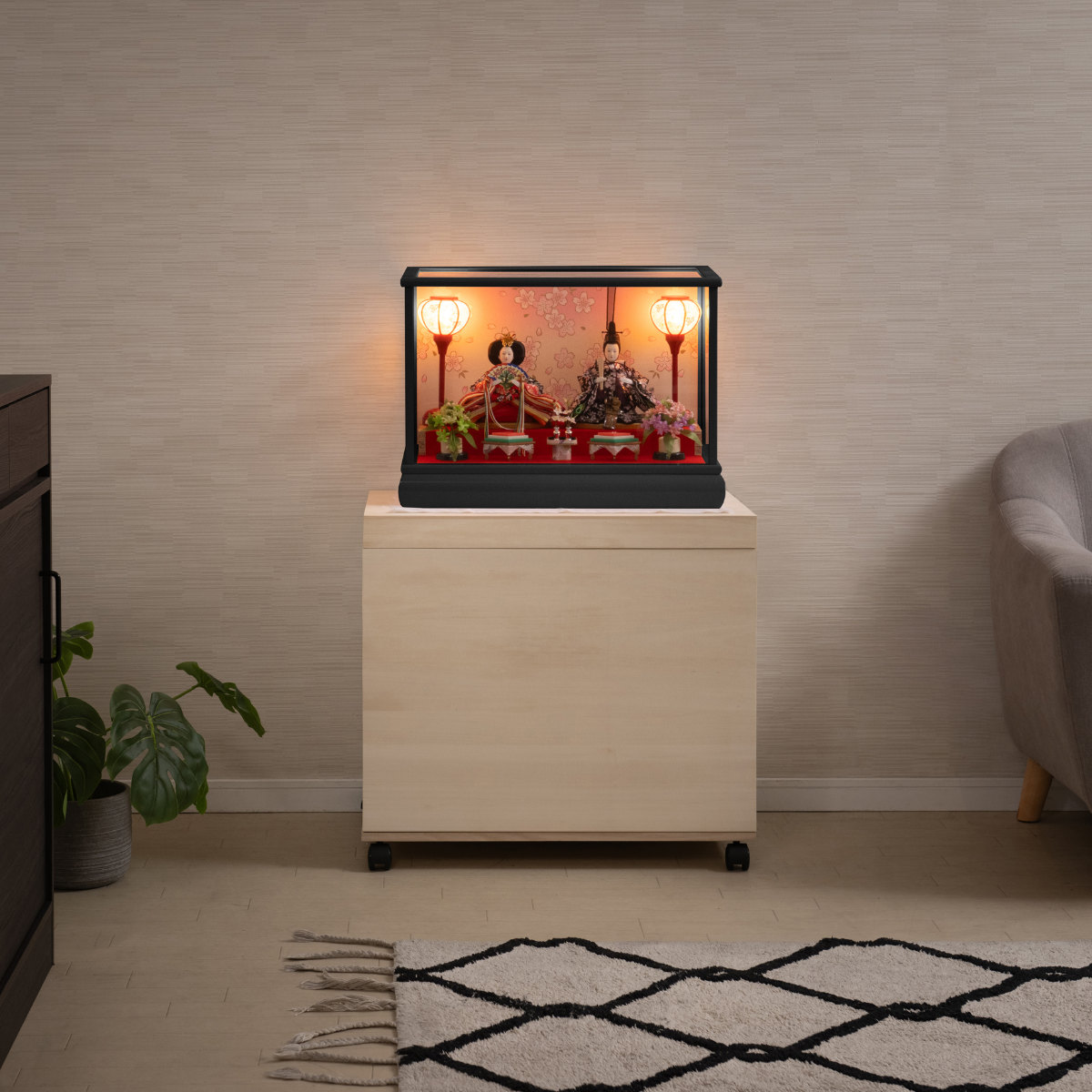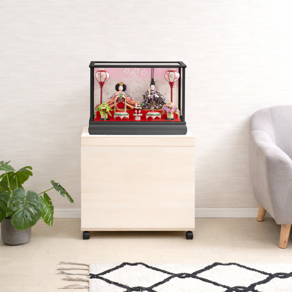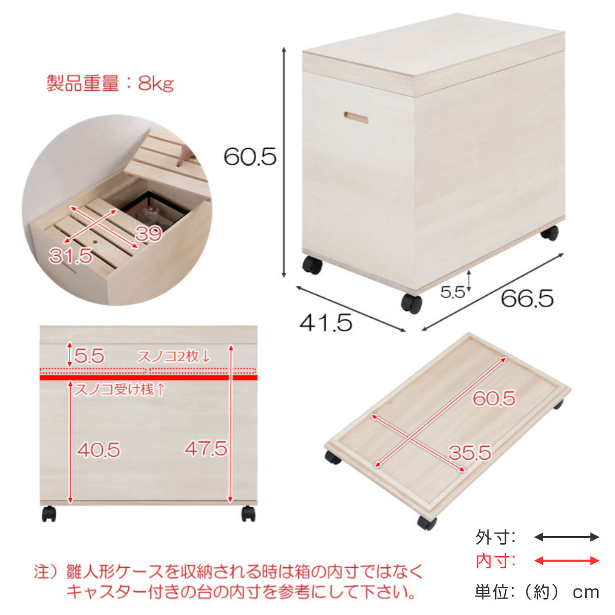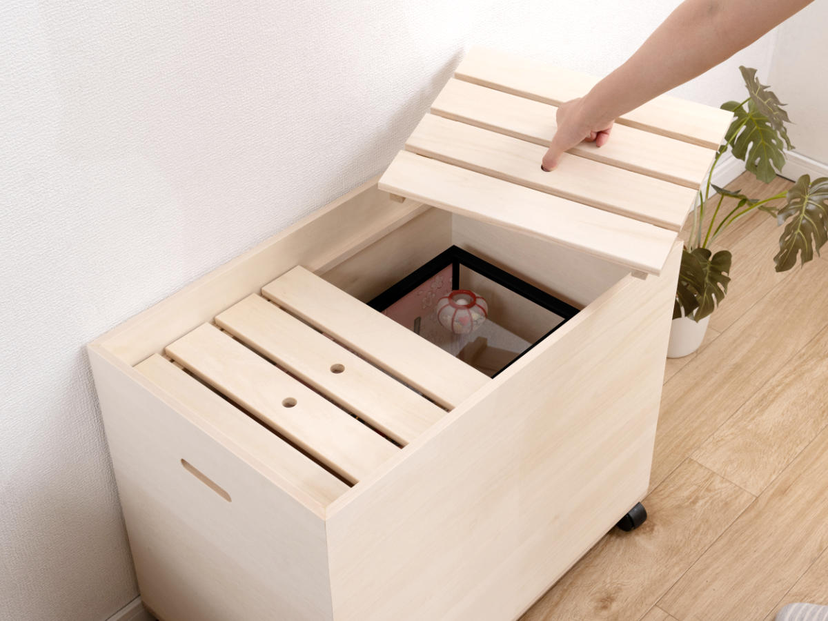 高さ60.5cmの商品は、上部に取り外しのできるすのこが付属しています。お雛さまの御小道具や思い出の小物などを一緒に収納できます。