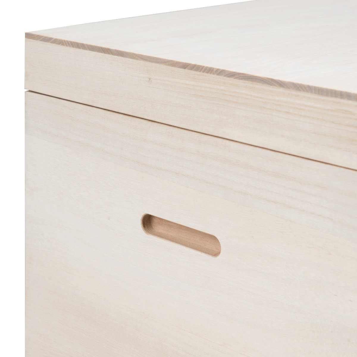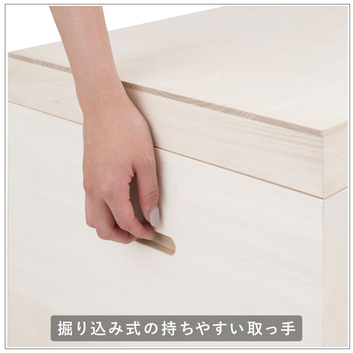 上からかぶせるタイプのフタなので、サッと取り出せて、簡単に収納できます。桐製は軽量なので、作業もラクです。