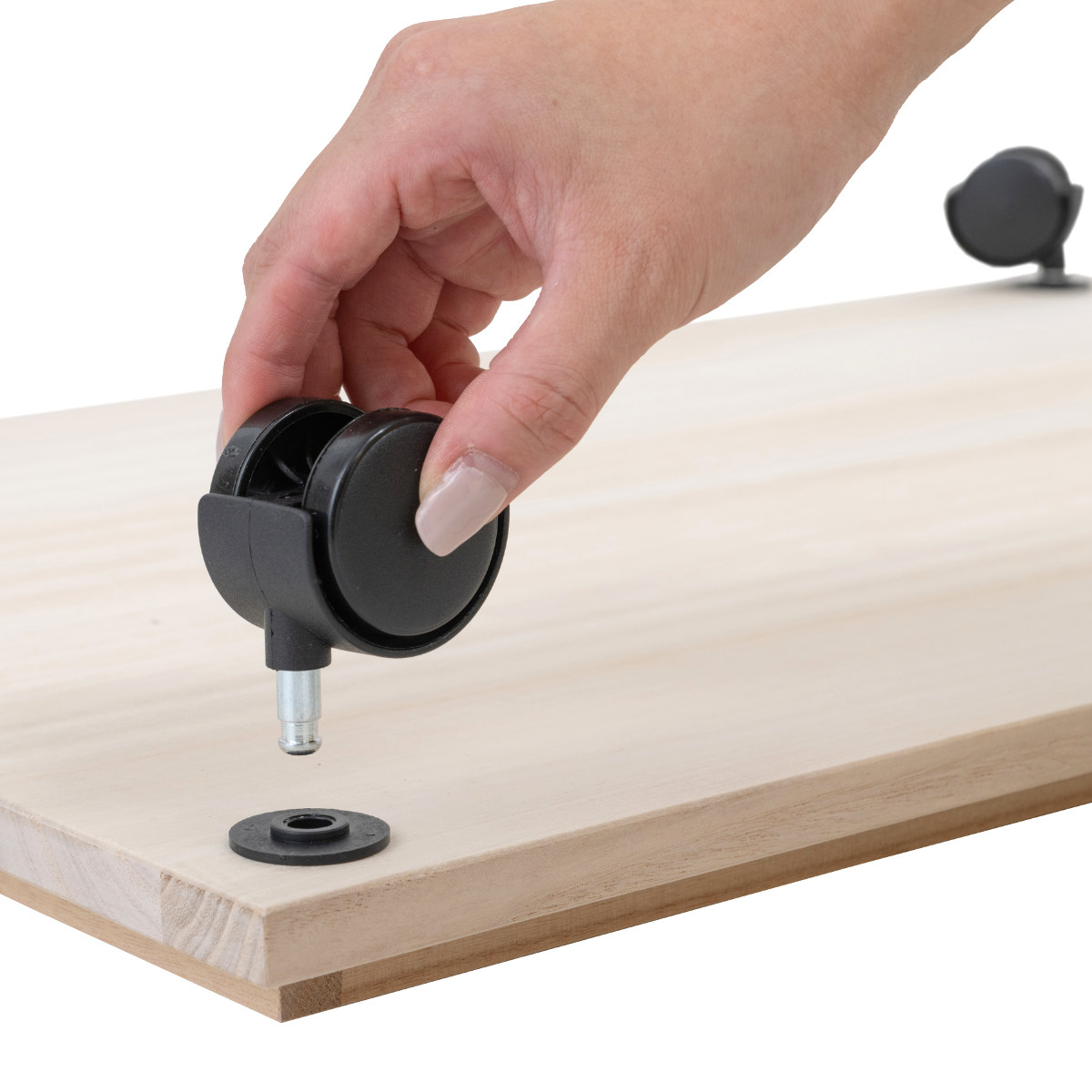 差し込み式のキャスターが付属しているので、収納場所から飾る場所への移動が簡単にできます。また、2個にはストッパーが付いているので、飾り台として使用する際もしっかり固定できます。