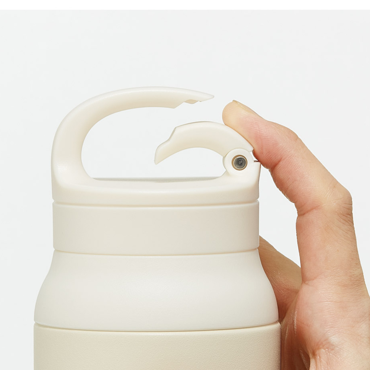 カラビナハンドル付きで持ち運びに便利な水筒です。ボトルだけを持ち運ぶオフィス内の移動や、スポーツやアウトドアなど幅広いシーンに活躍します。また、カラビナをベルトやバッグのループに取り付けることで、わざわざ収納しなくても手軽に持ち運べます。