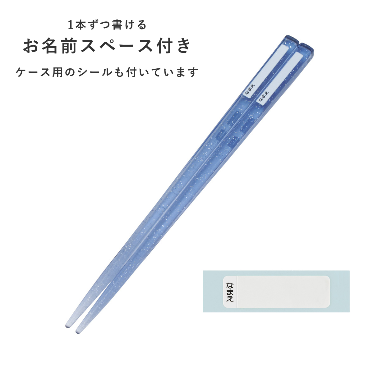 お箸には1本ずつ名前を書き込める名前スペースがあります。ケース用のシールも付いています。