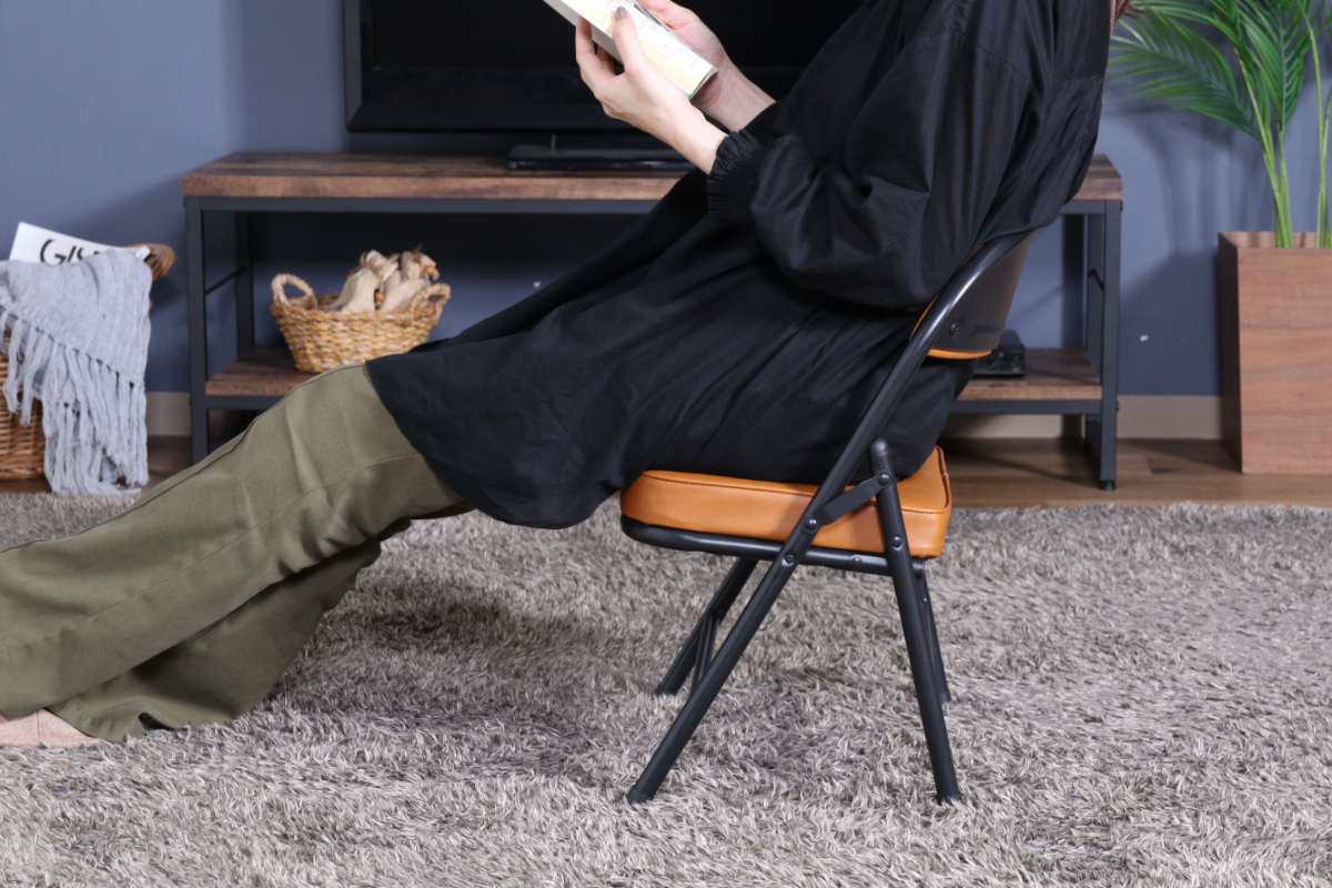 座面が低め設計のロータイプなので、ローテーブルと合わせやすく、床中心の生活にも自然になじみます。 脚を伸ばしてリラックスした姿勢で、ゆったりとくつろげます。
