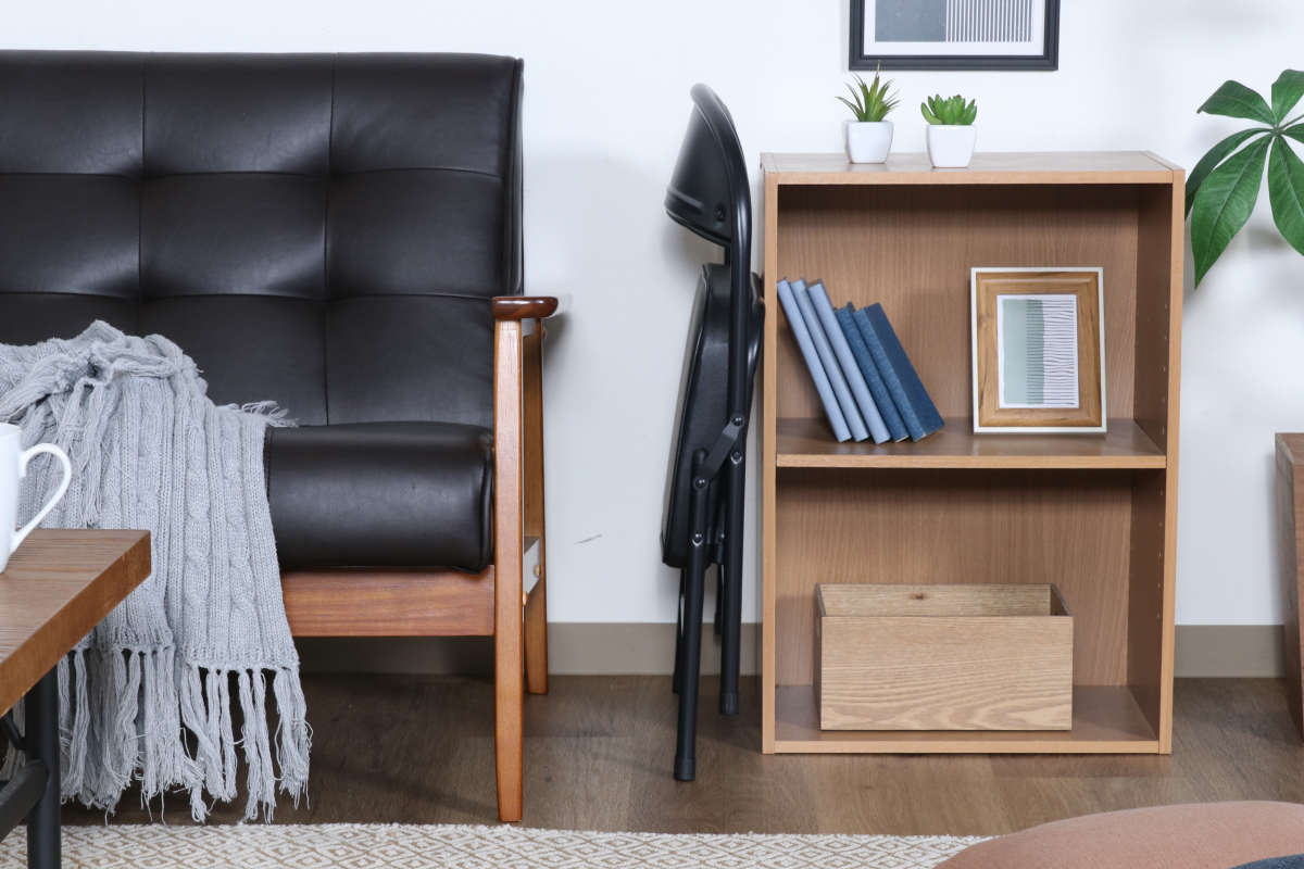 使わないときはコンパクトに折りたたみ可能。 壁に立てかけたり、家具のすき間にも省スペースで収納できます。