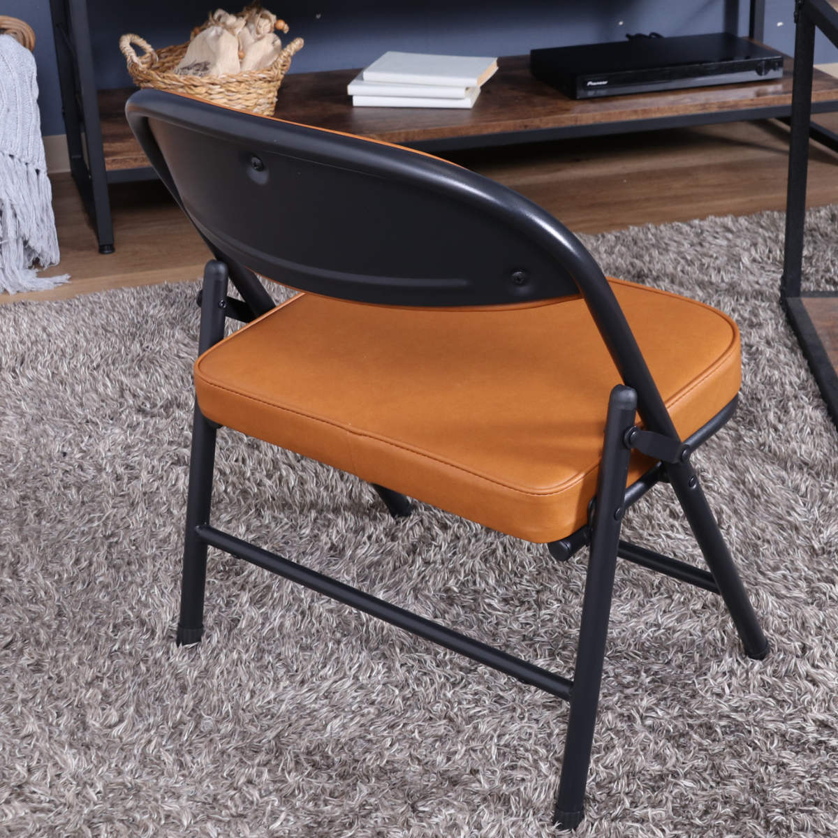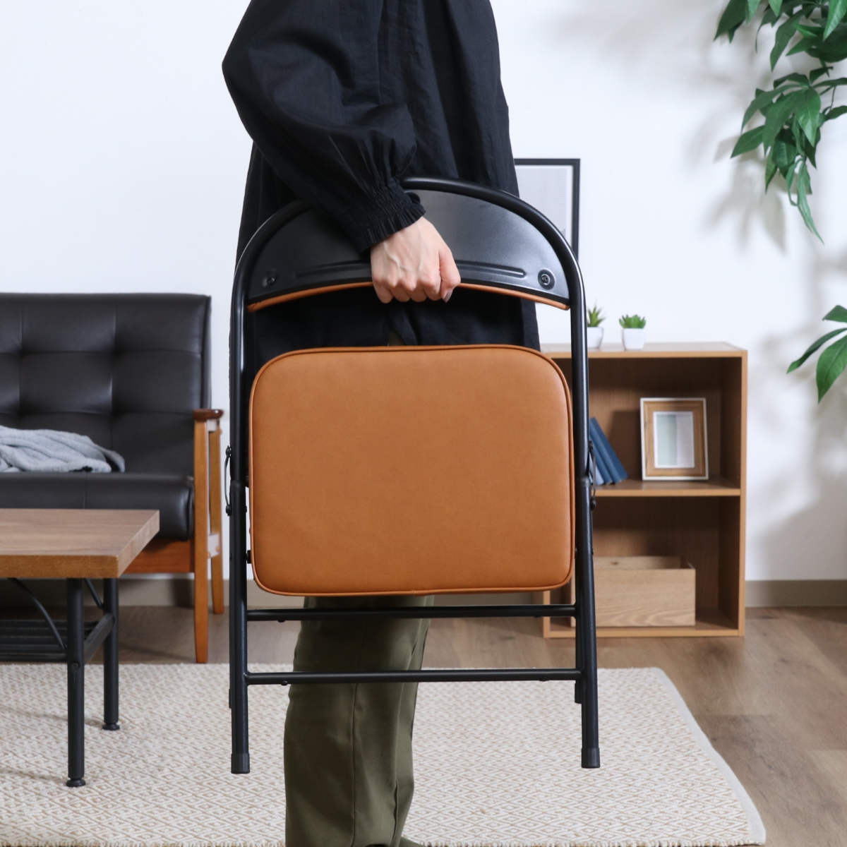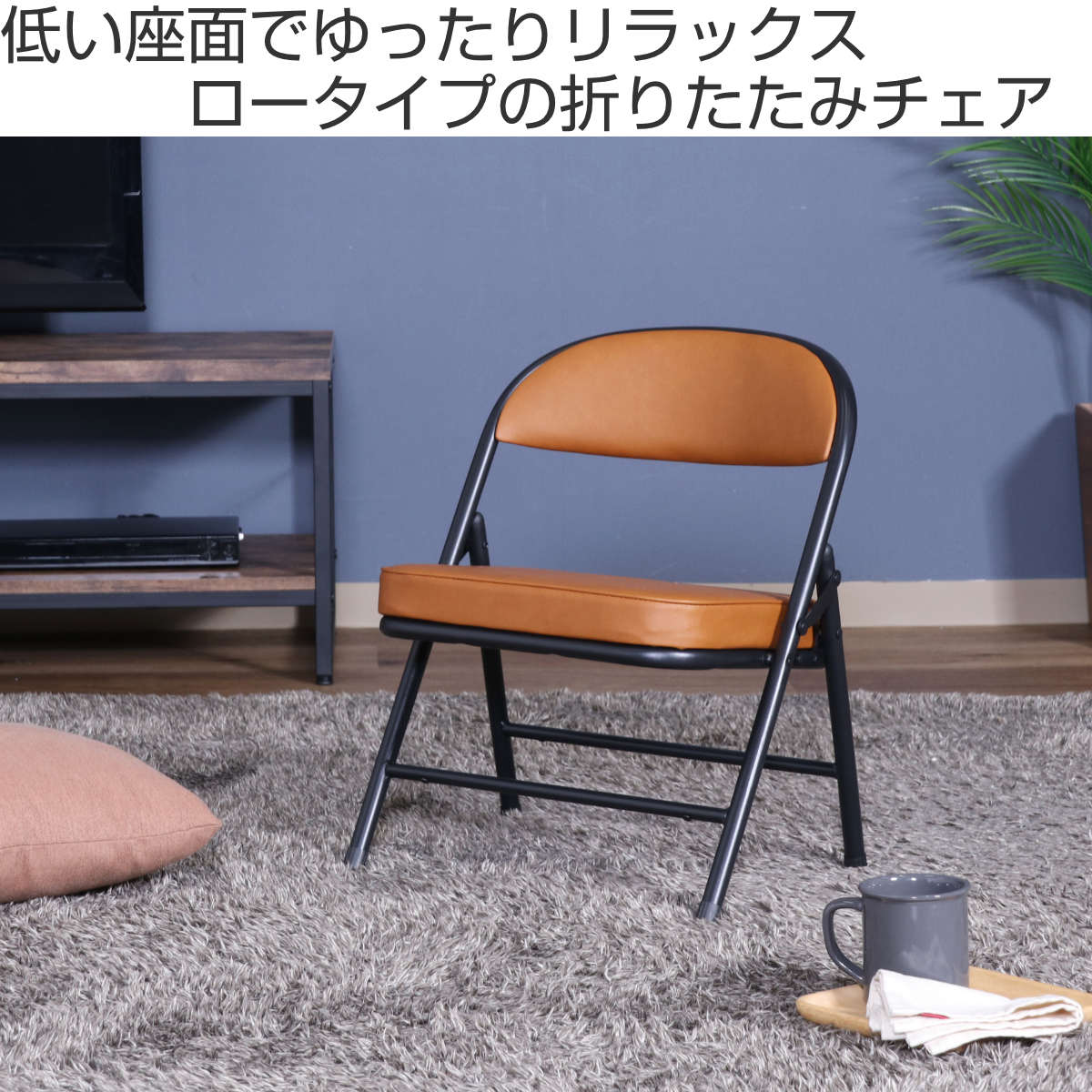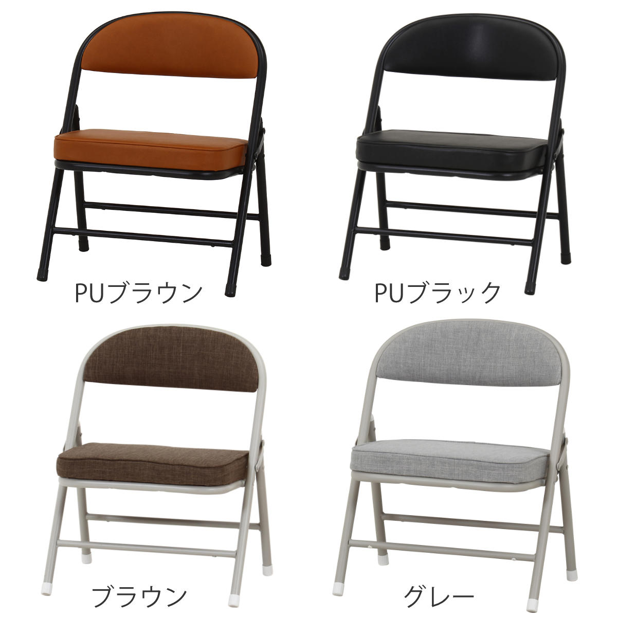 折りたたみ椅子 ロータイプ 2脚セット コンパクト ( チェア 折り畳み 1人掛け イス 椅子 いす 腰掛け 座面 広い 低め 軽量 レザー調 ファブリック 軽い チェアー キッチン 来客用 サブチェア 玄関 リビング クッション座面 ) 【PUブラック】