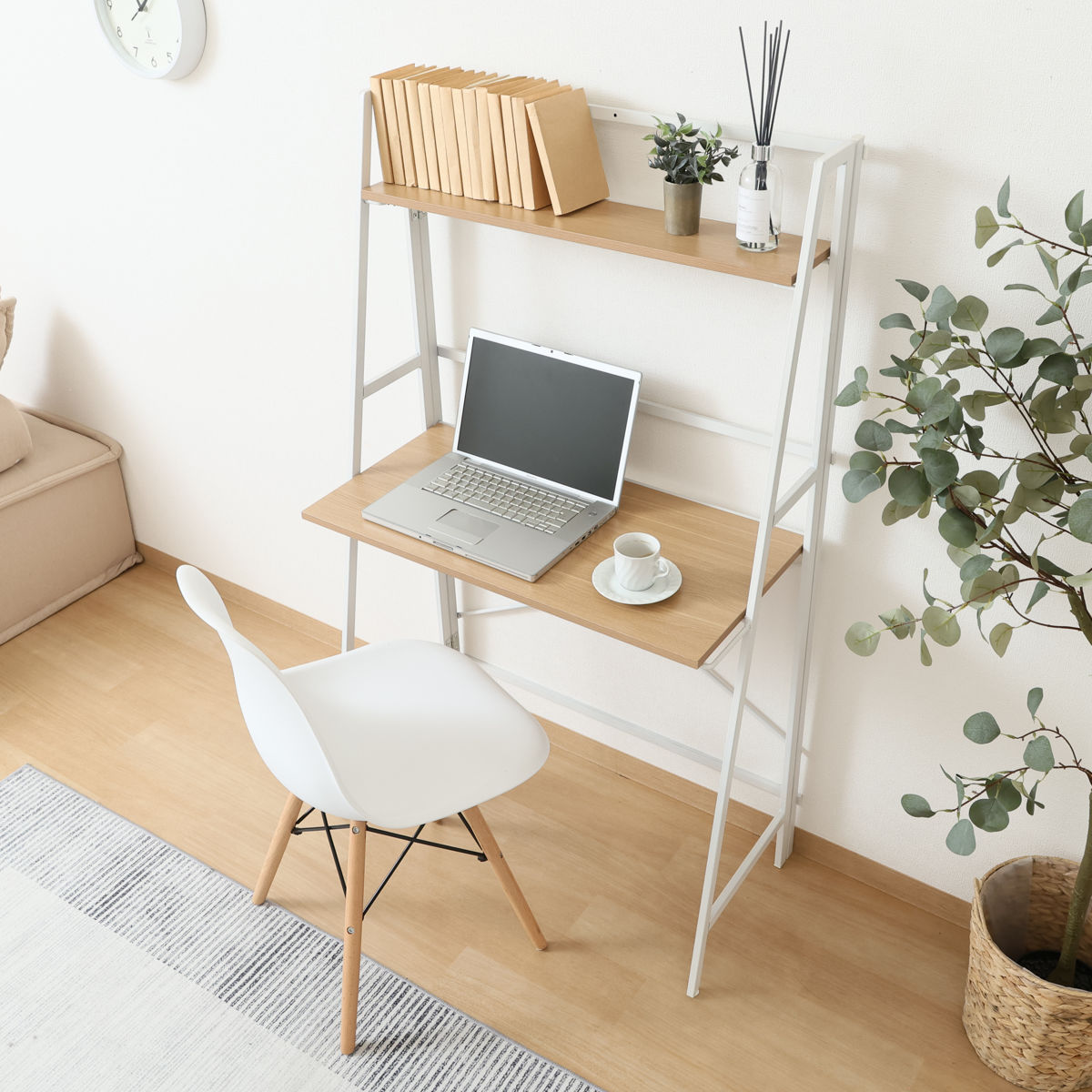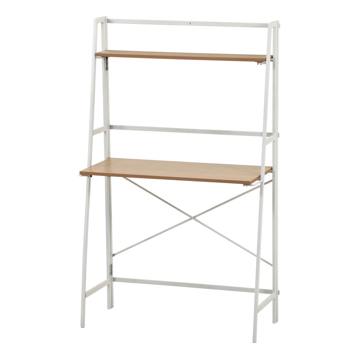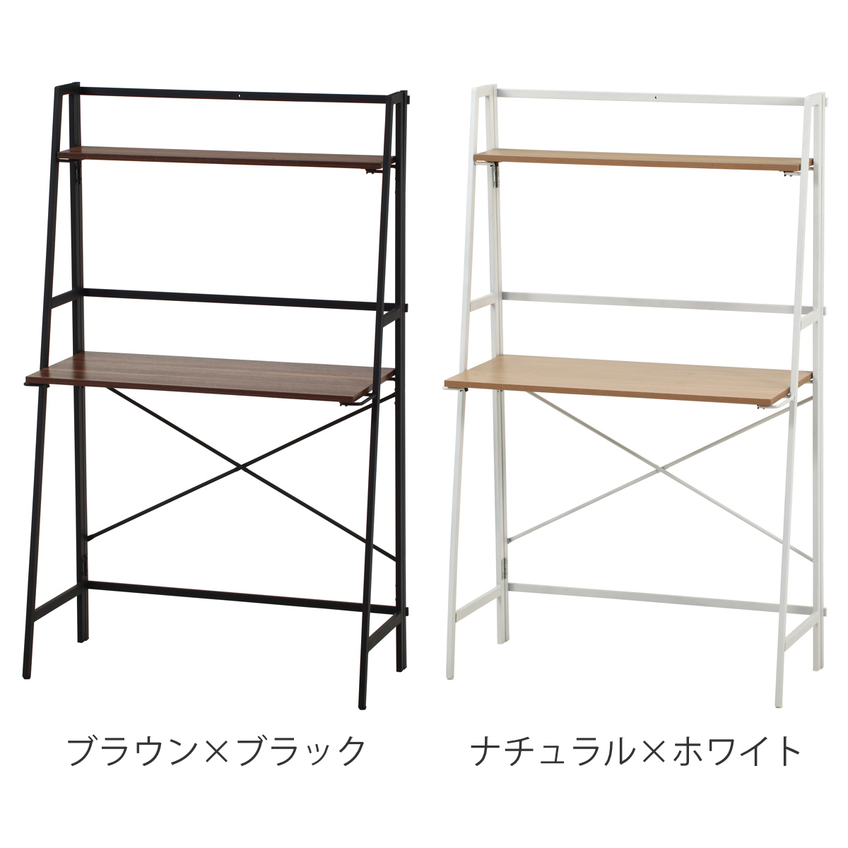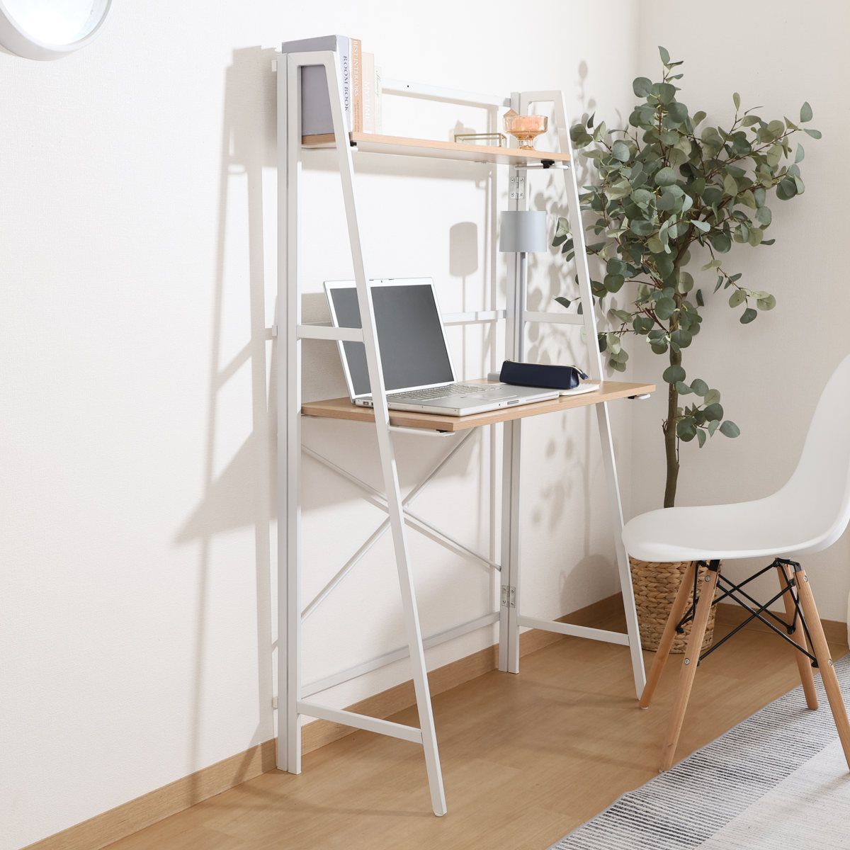 パソコンデスク 幅80cm 折りたたみ可能 棚付き コンパクト フォールディングデスク タワータイプ ペルル ( デスク 机 ワークデスク 学習机 勉強机 棚 木目 スチール 奥行41cm パソコン PC リビングデスク メラミン天板 傷に強い ) 【ナチュラル×ホワイト】
