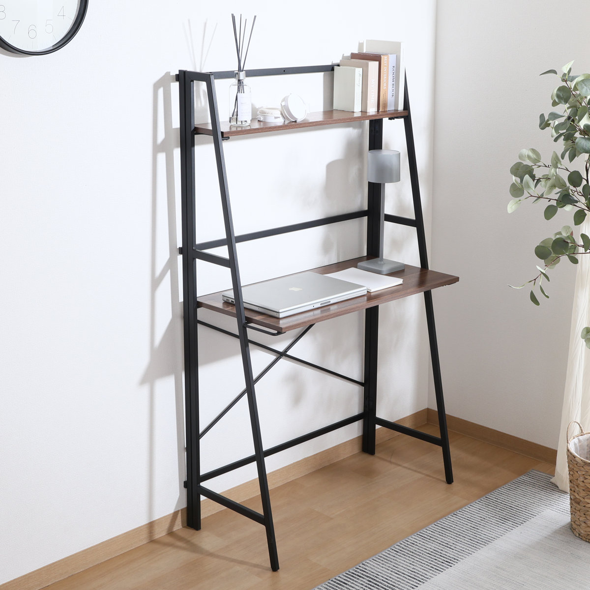 ●木目×スチールの組み合わせがおしゃれなデスクです。