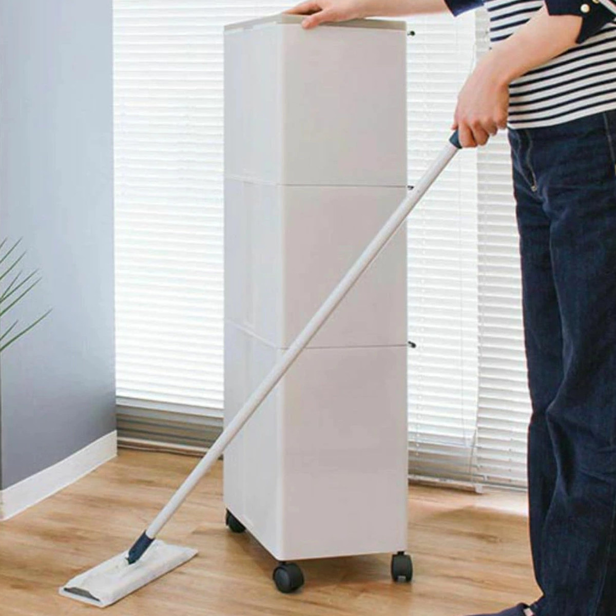 キャスター付きなので、掃除機をかける際などのちょっとした移動の時に便利です。キャスターは取り外し可能で、ゴミ箱を床に直接置くこともできます。