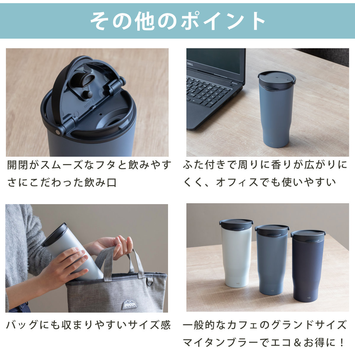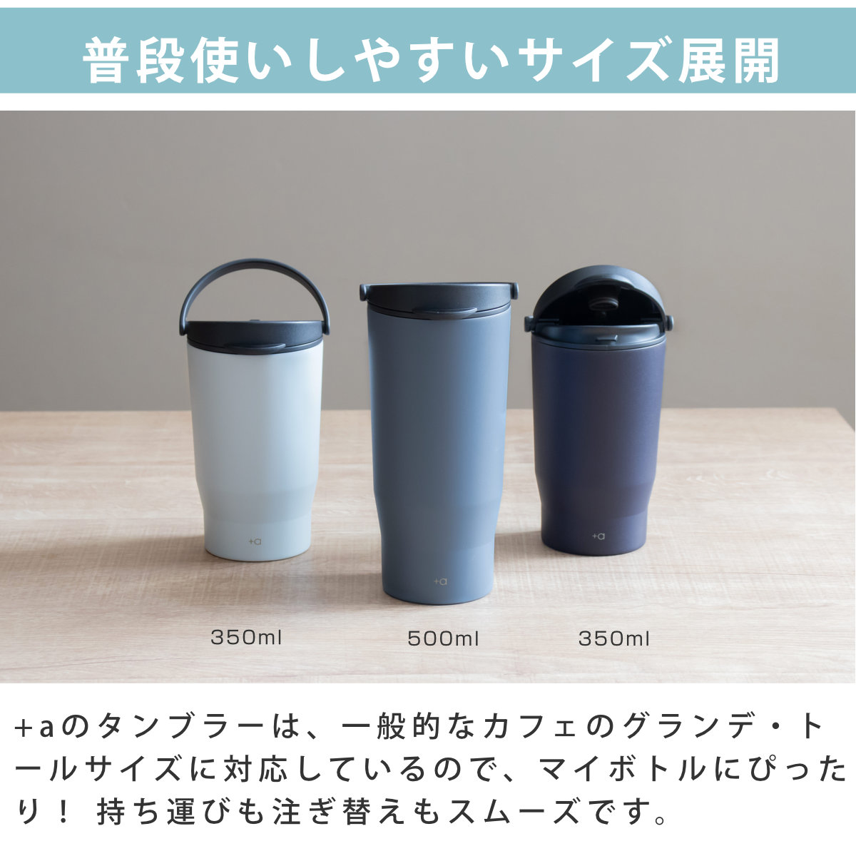 ![]() ハンドル付きコーヒータンブラー 350ml プラスエー | ![]() ハンドル付きコーヒータンブラー 500ml プラスエー 【▲このページの商品】 |