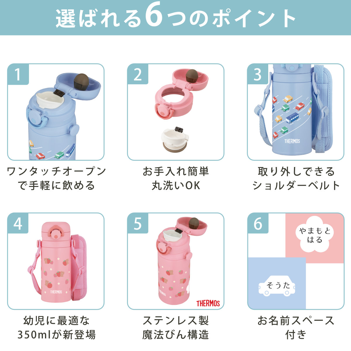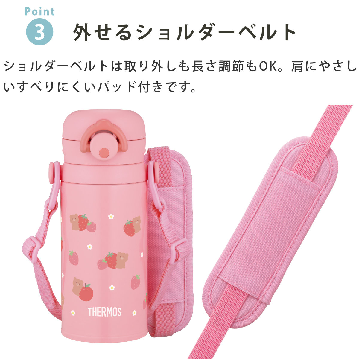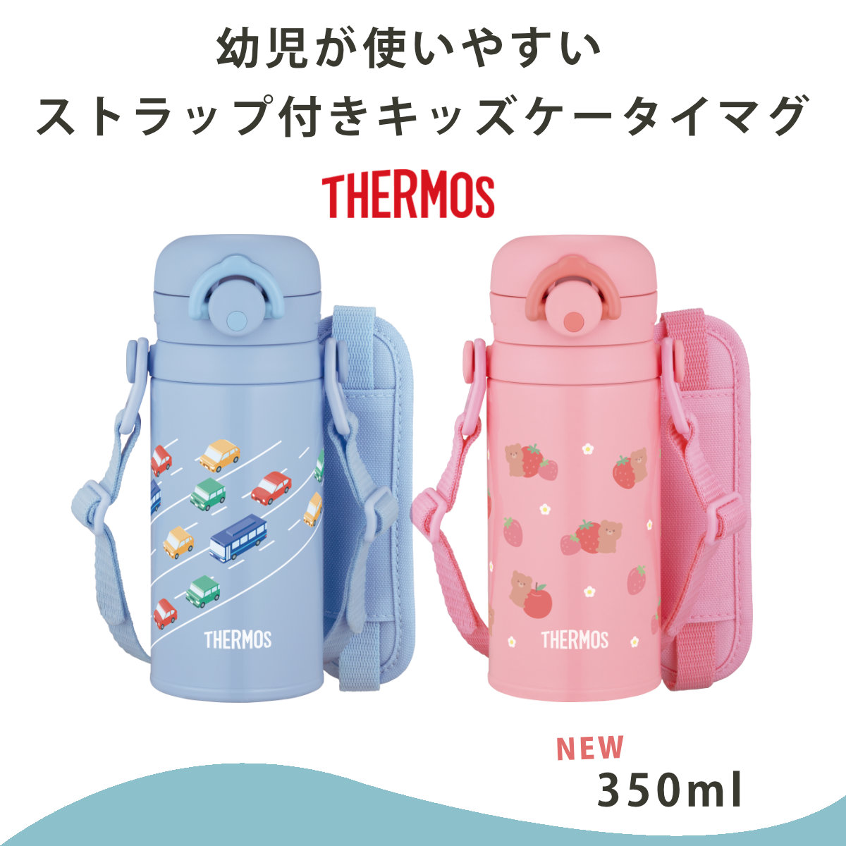 サーモス 水筒 350ml 真空断熱キッズケータイマグ JPF-350 ( THERMOS 保温 保冷 ワンタッチ 直飲み スポーツドリンク対応 子供 ステンレスボトル キッズボトル マグボトル ワンプッシュ 子供用水筒 キッズ ) 【ストロベリーピンク】