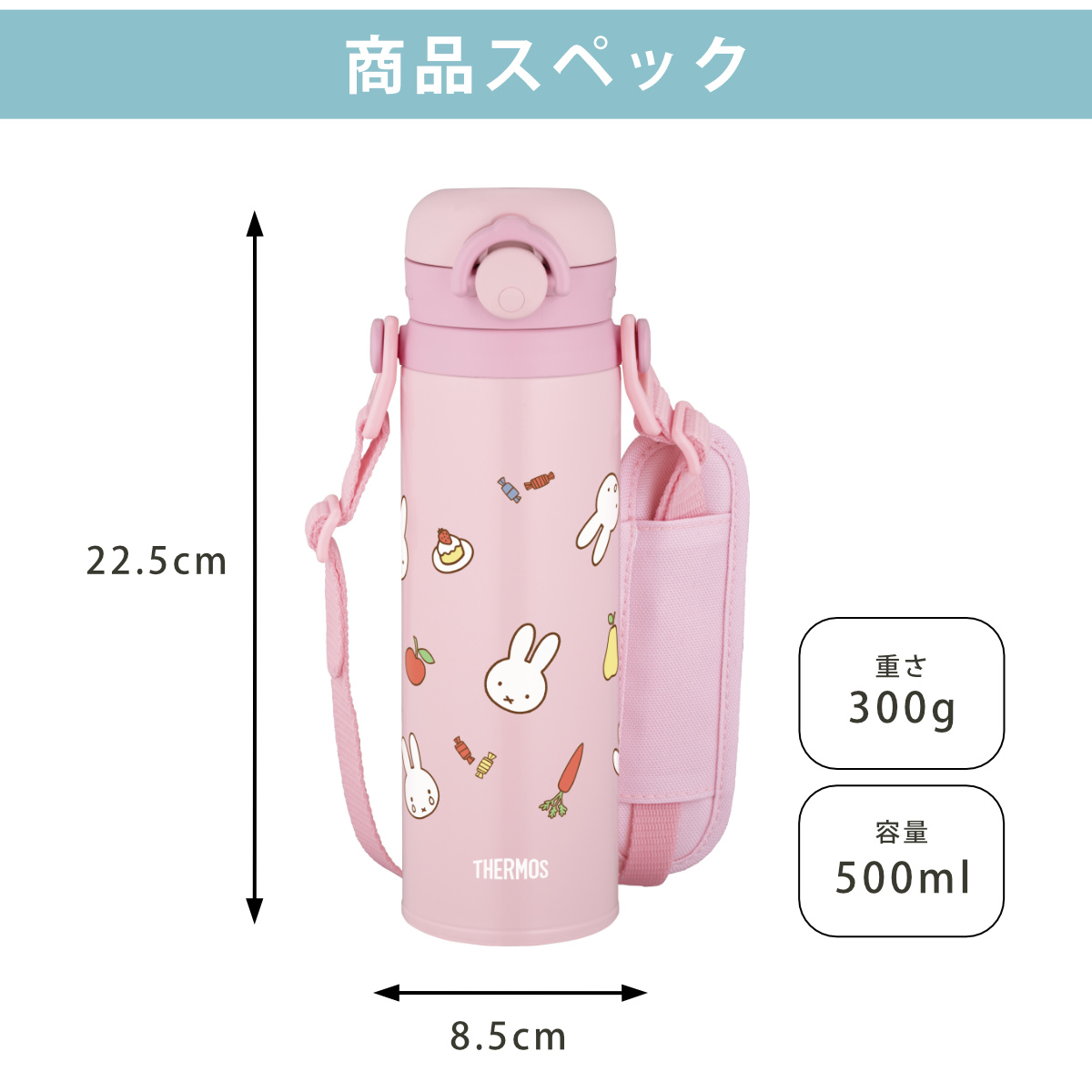 サーモス 水筒 500ml 真空断熱キッズケータイマグ JPF-500B ( THERMOS 保温 保冷 ミッキー ミッフィー ワンタッチ 直飲み スポーツドリンク対応 子供 ステンレスボトル キッズボトル マグボトル ワンプッシュ 子供用水筒 キッズ ) 【ライトピンク】
