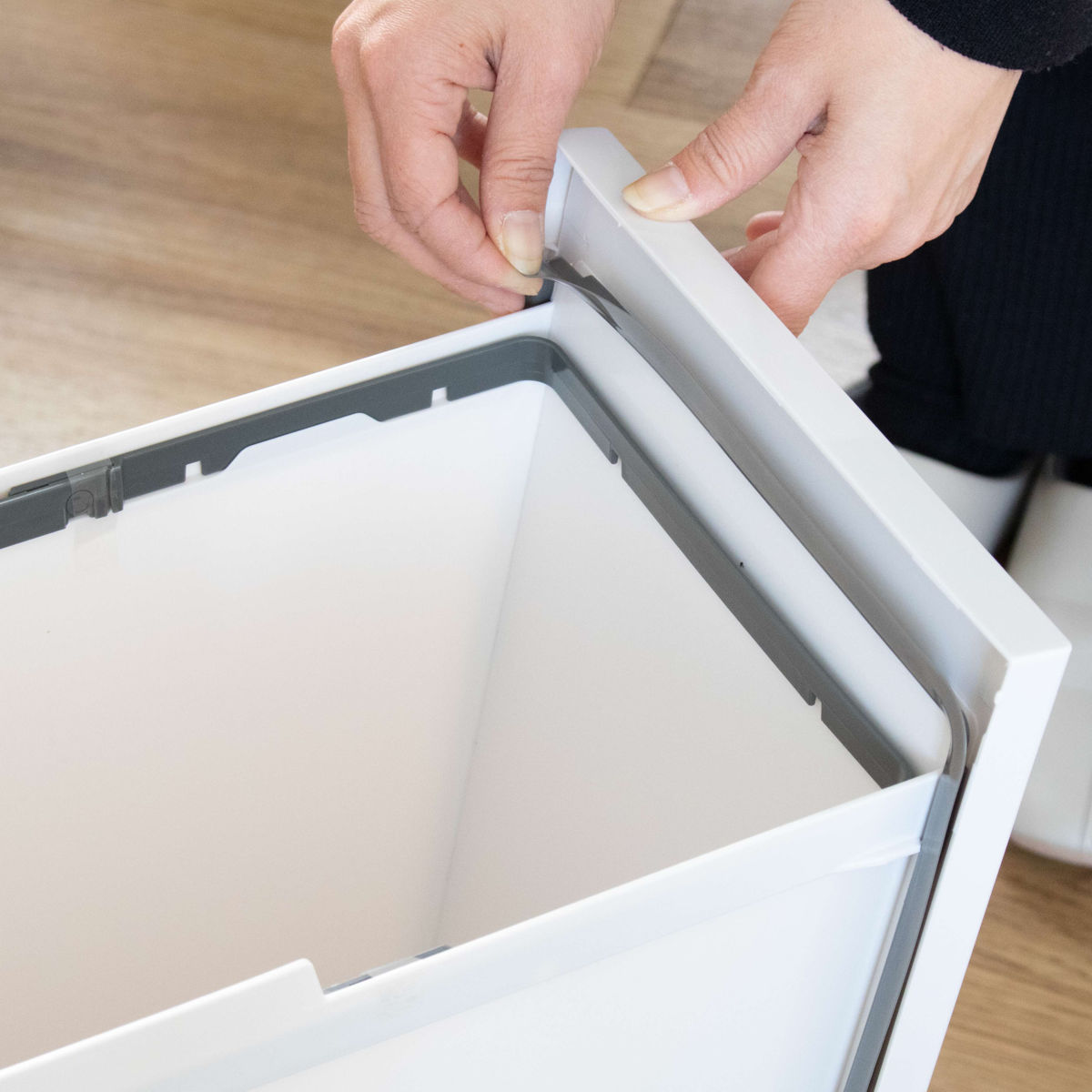生ゴミやオムツ、ペットシーツなど、毎日の暮らしで気になるニオイ問題。上下段ともにパッキンを備えた密閉設計で、ニオイ漏れをしっかり防ぐ2段式ゴミ箱です。ぐるりと囲むパッキンを採用し、嫌なニオイを中に閉じ込めます。キッチンやリビングでも快適な快適な空間を保ちます。