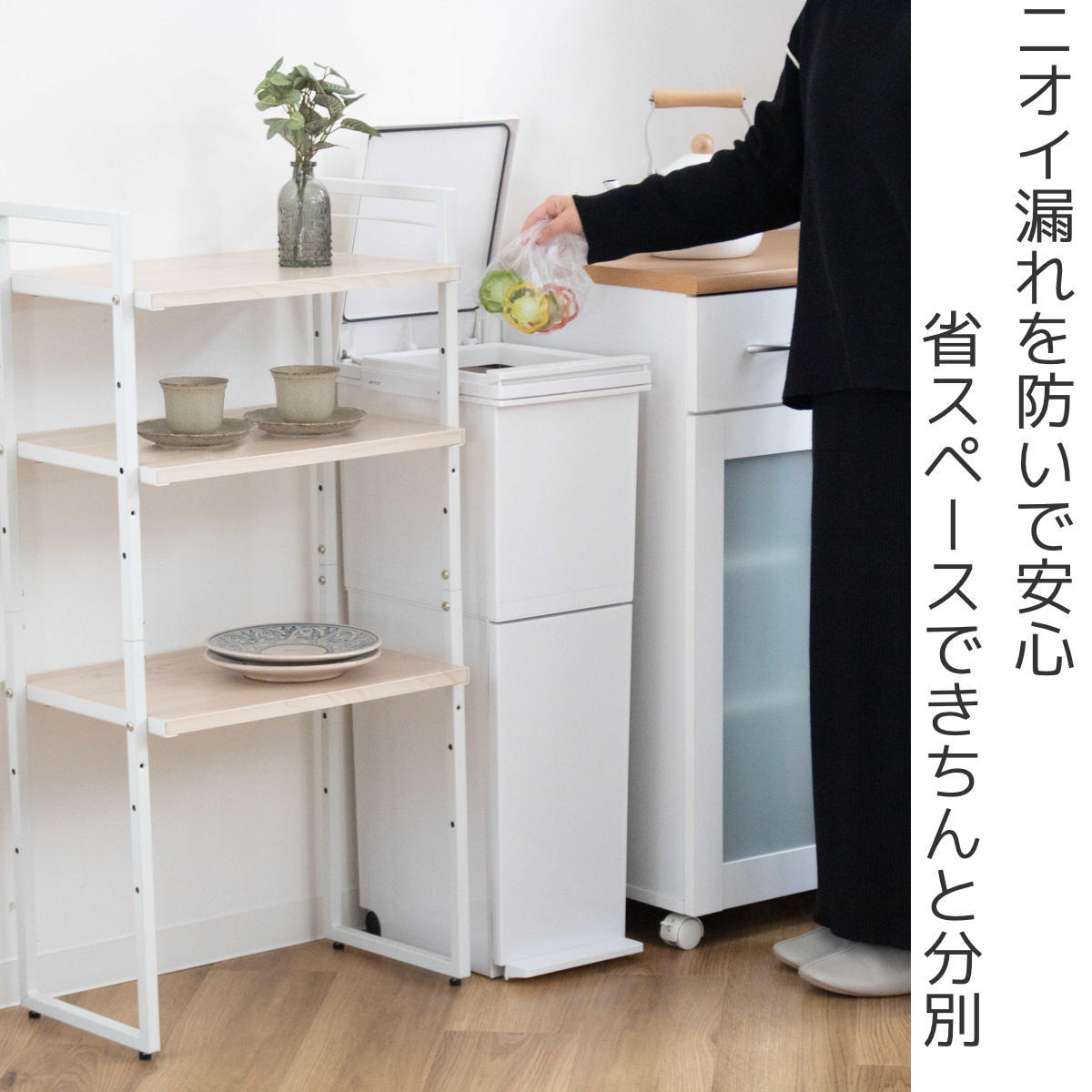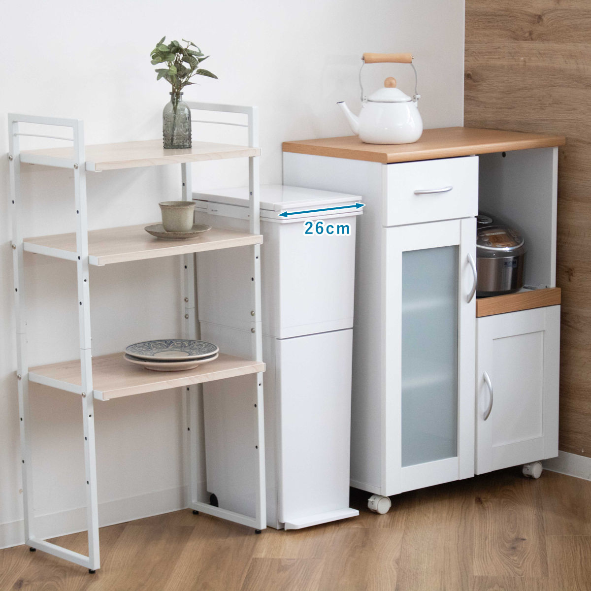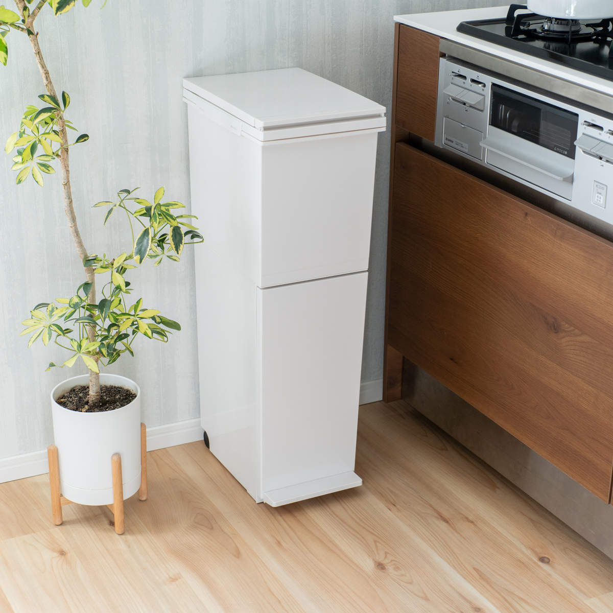 冷蔵庫横・シンク横・食器棚横など、限られたスペースにもすっきり設置できるスリムな幅です。デッドスペースを有効活用しながら、分別ゴミ箱をスマートに置けます。