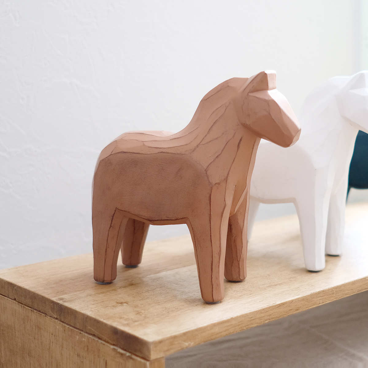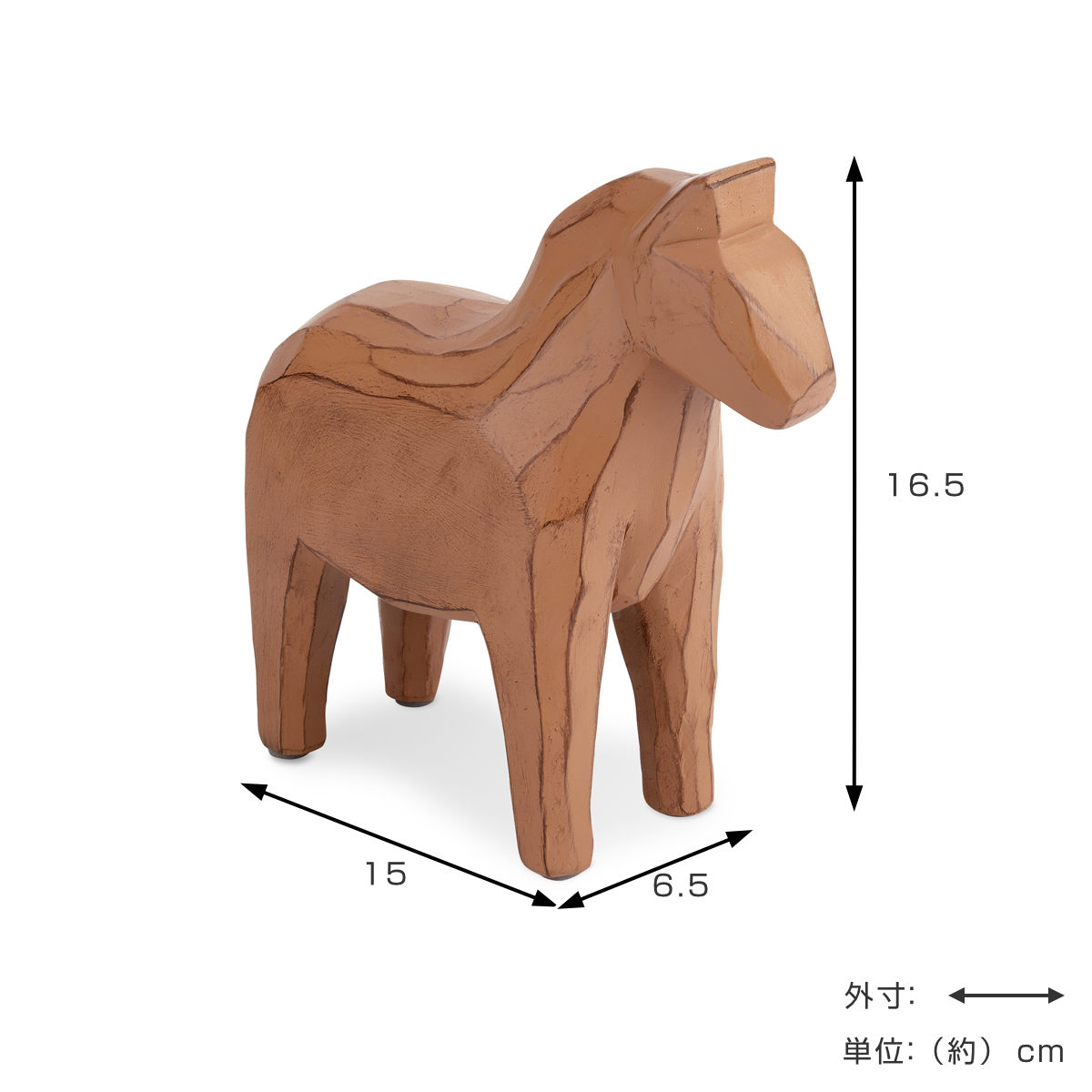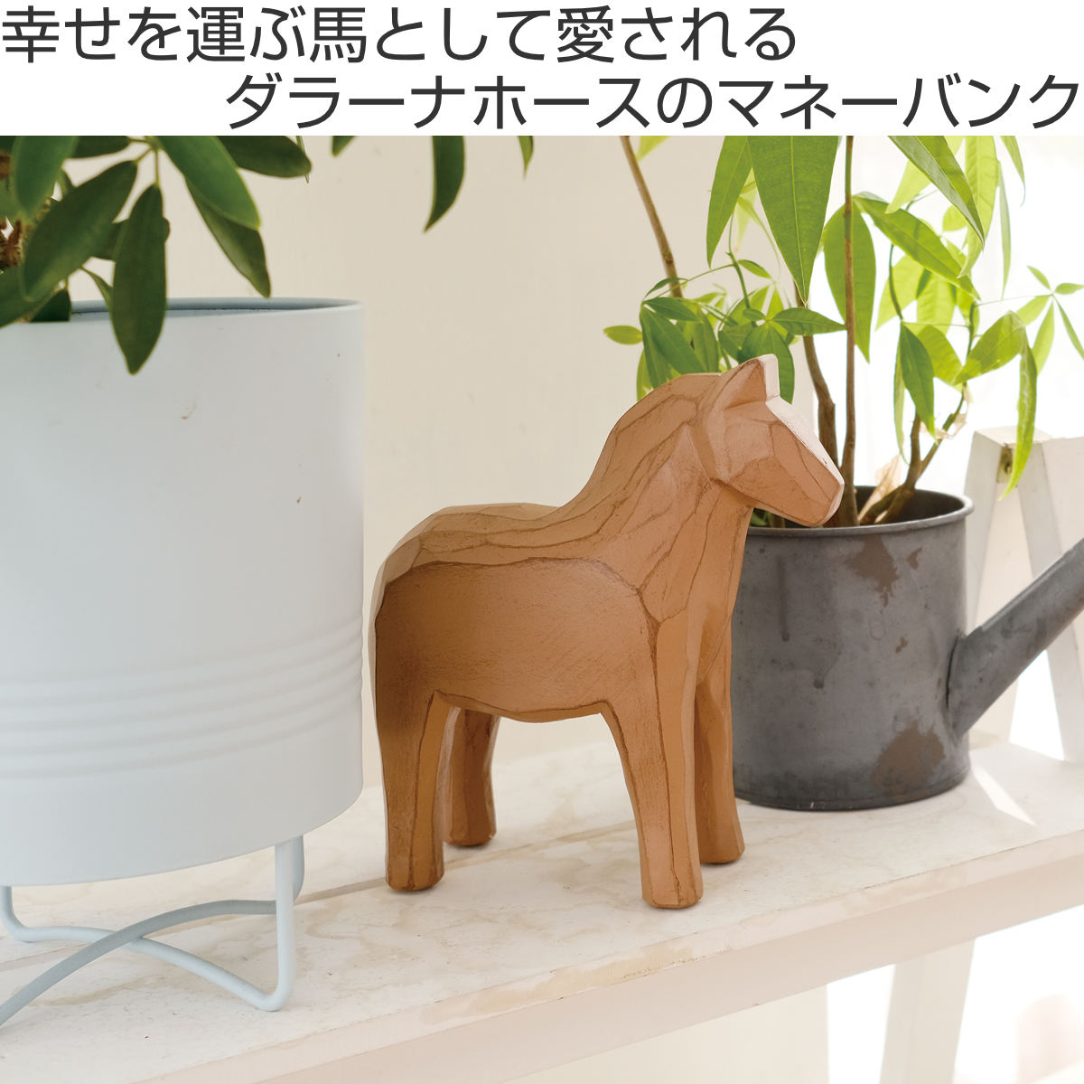 幸せの象徴として親しまれるスウェーデン生まれのダーラナホースを、木彫調のレジン素材で表現した上品な貯金箱です。素朴で温かみのある質感と落ち着いたデザインが、インテリアにやさしくなじみます。