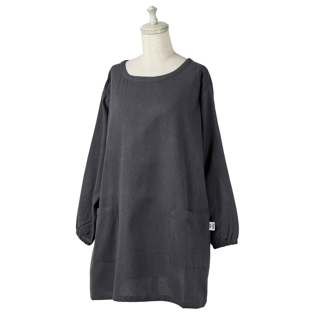 割烹着 イージー カッポウギ リサイクル糸 ( かっぽうぎ エプロン 作業着 台所エプロン 袖付きエプロン ポケット付き おしゃれ ワンピースエプロン 長袖 袖 ゴム 無地 シンプル 大人用 腰ひも レディース サステナブル ) 【グレー】