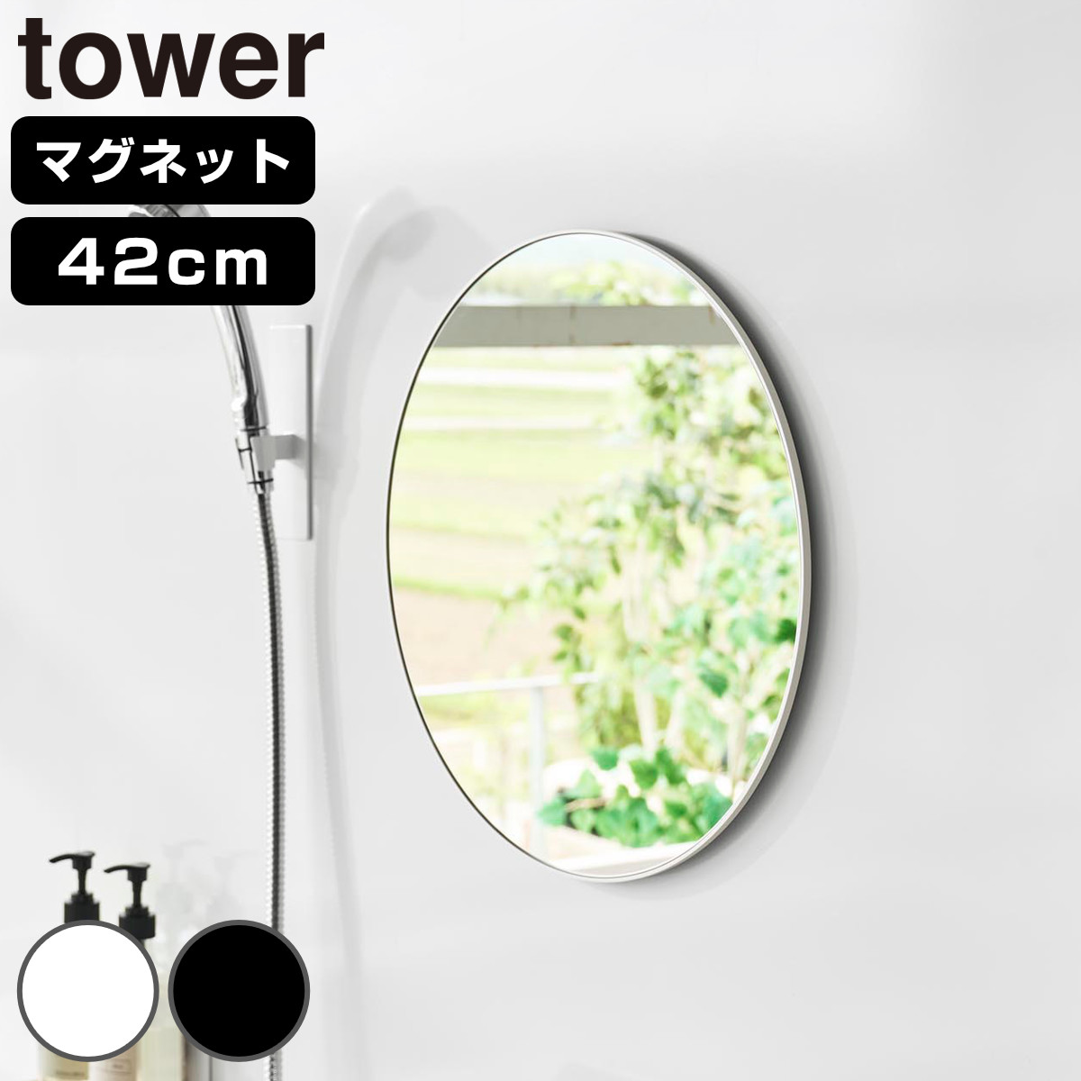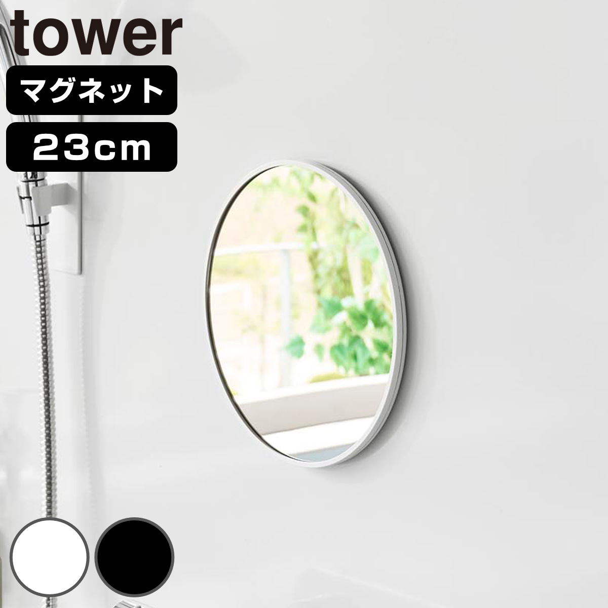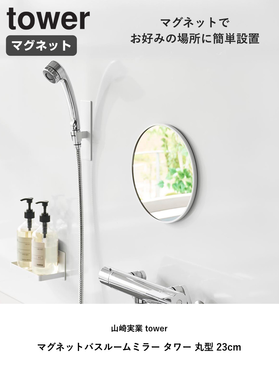 山崎実業 tower マグネットバスルームミラー タワー 丸型 23cm ( 4903208101752 タワーシリーズ バスルームミラー 鏡 風呂 磁石 丸 23センチ マグネット バスルーム ミラー くもり止め バスミラー かがみ ) 【ブラック】