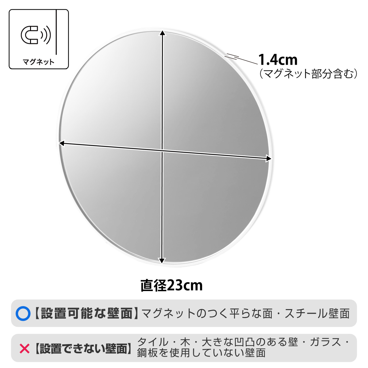 | 材質 | フレーム:ABS樹脂 マグネット 滑り止め:シリコーンゴム ミラー:3mm厚ガラス 表面フィルム:PET |