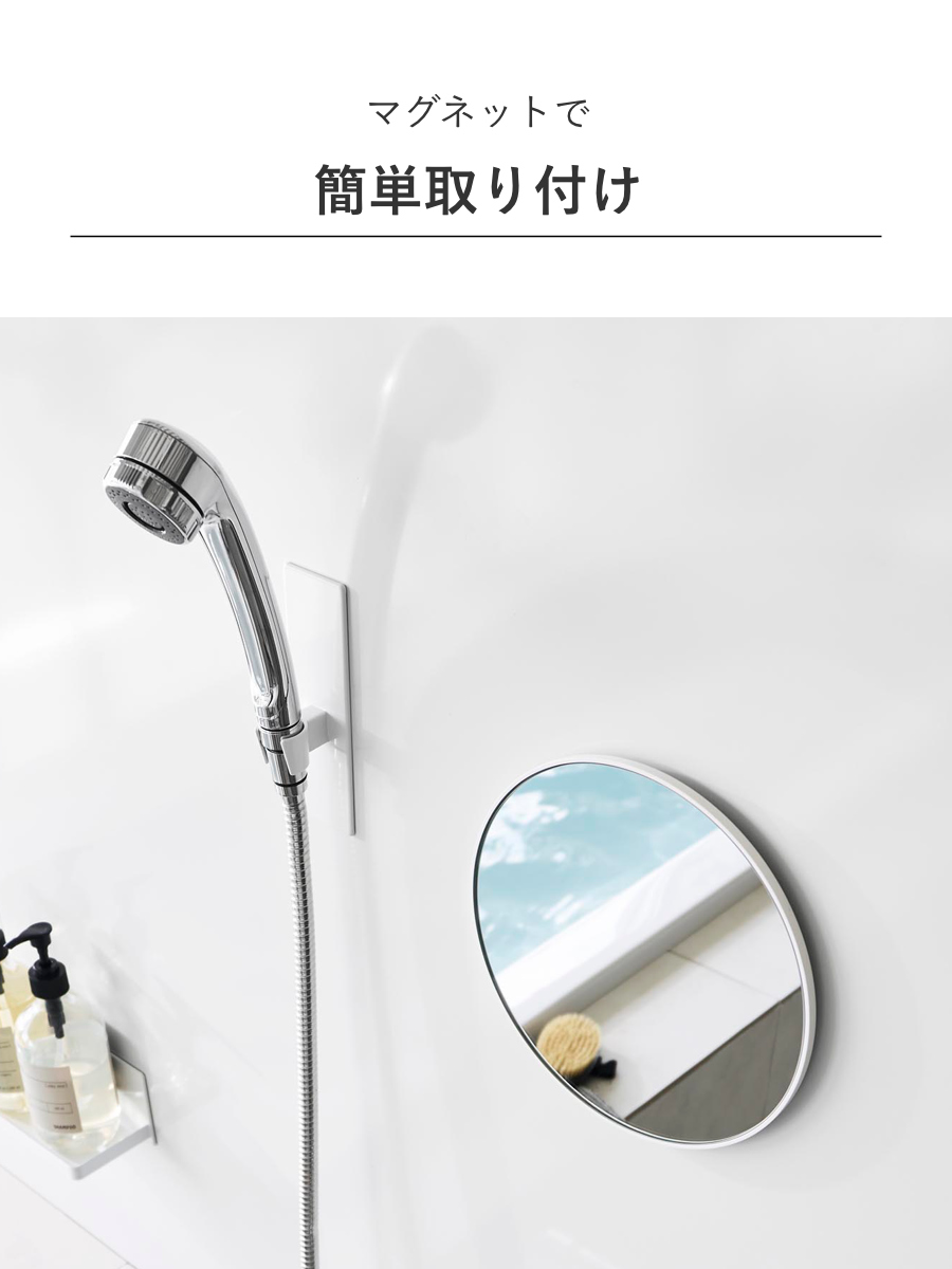 裏面にマグネットが付いているので、お好みの場所に簡単に取り付けられます。浴室の壁面に穴を開けずに気軽に設置できて賃貸にお住まいの方にもおすすめです。