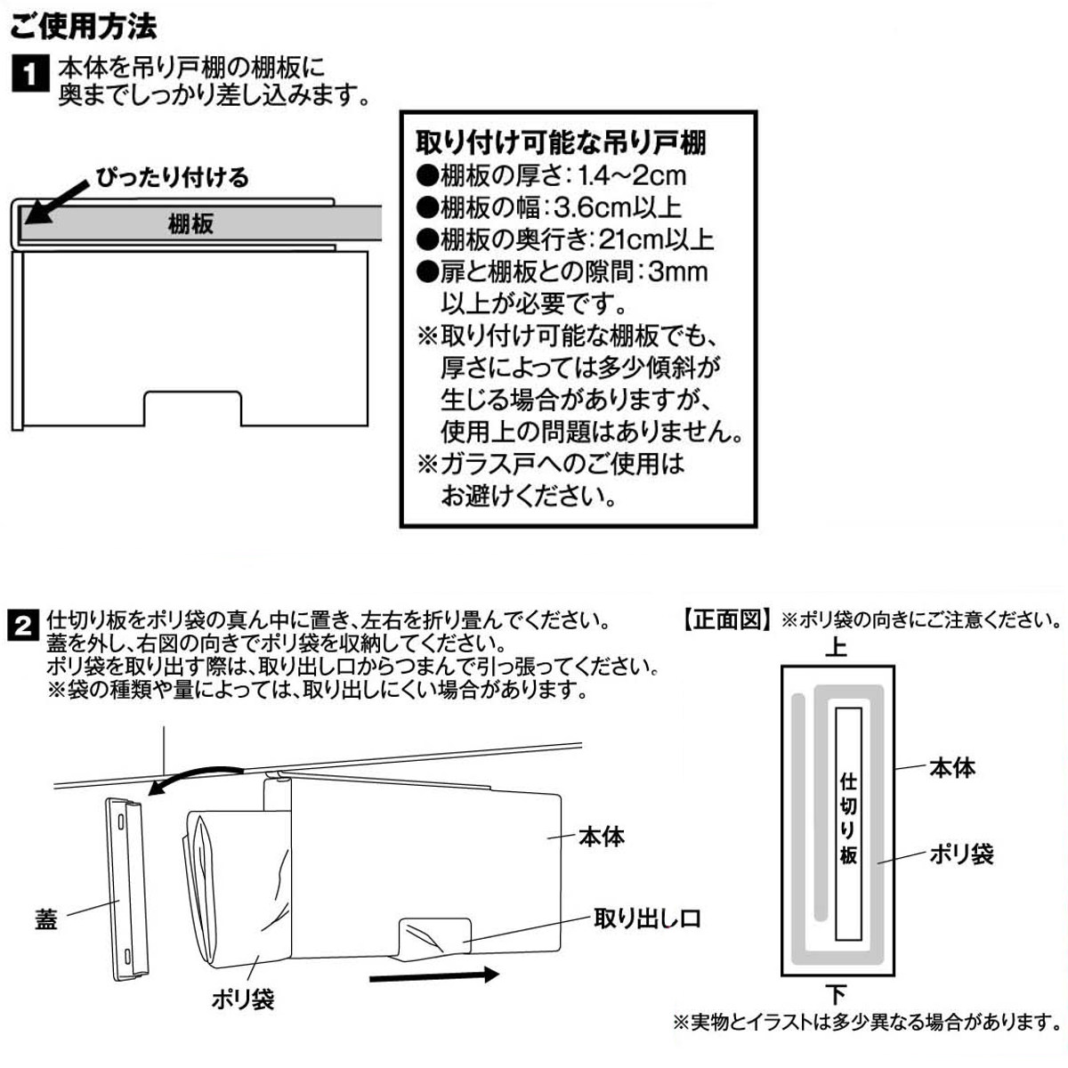 | 対応サイズ | 幅20(マチ含まず)×高さ35cmまでのポリ袋を約100枚(袋の厚さにより枚数は異なります。) |