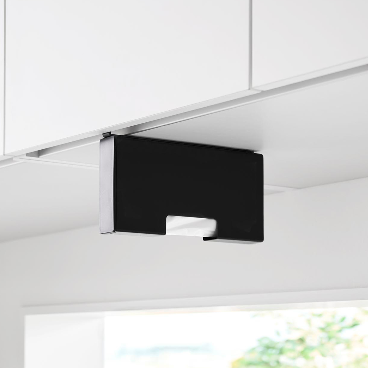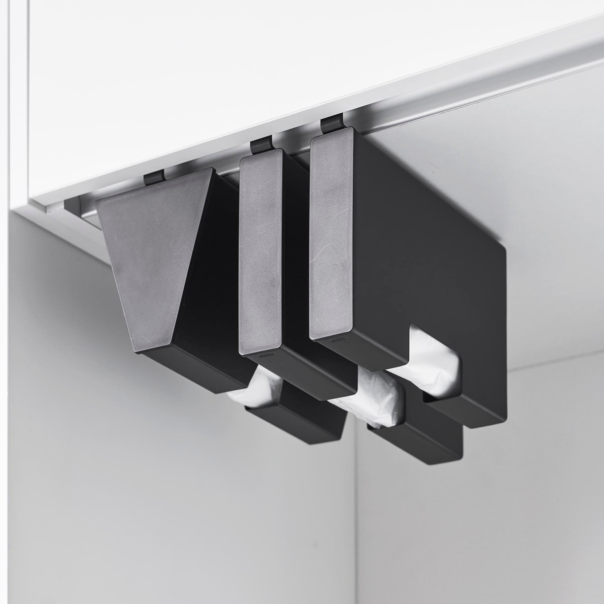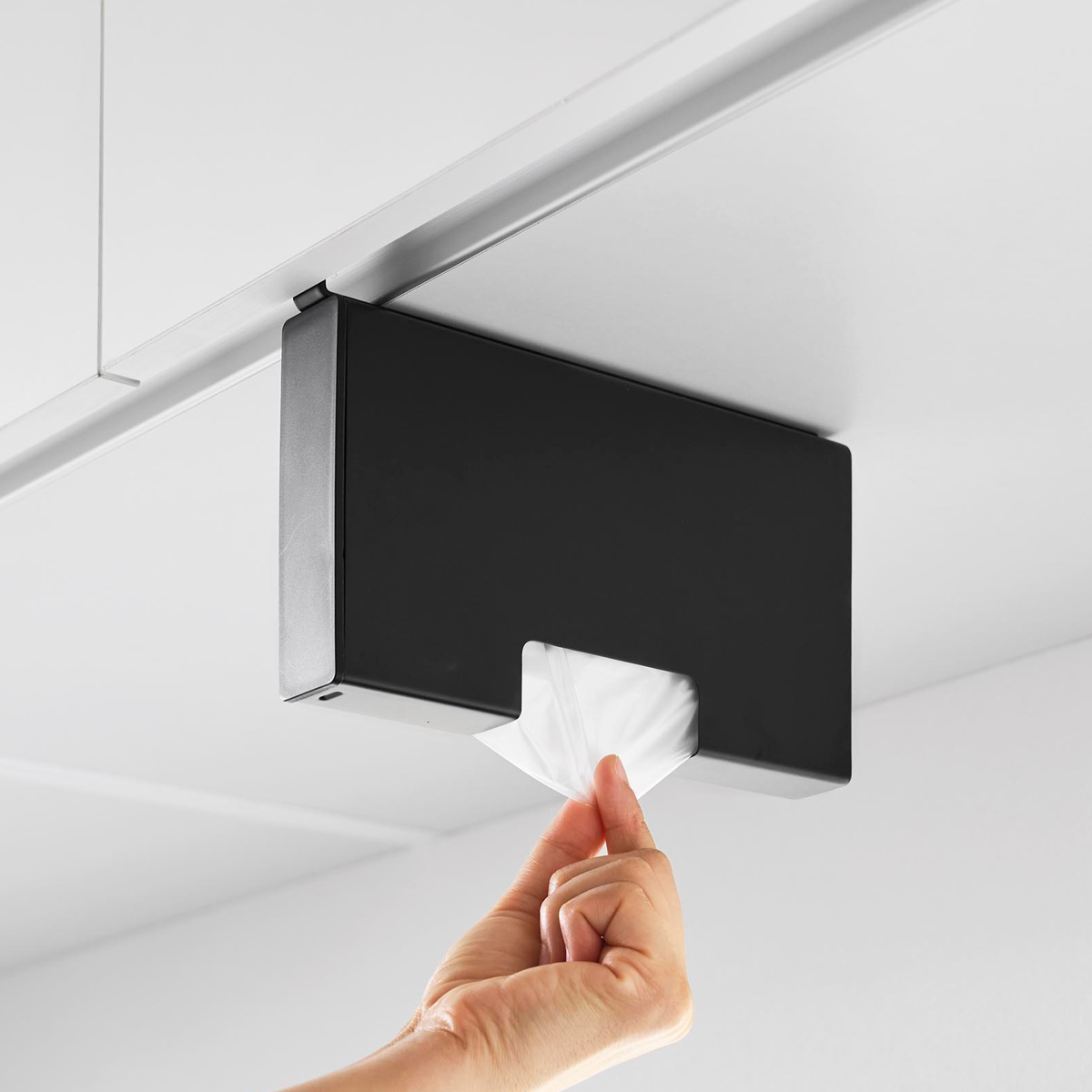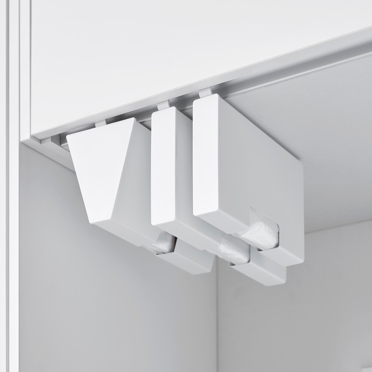吊り下げ戸棚に差し込むだけの簡単設置で気軽に使用できるポリ袋収納ホルダーです。調理中や片付けの際、必要な時に片手でサッとポリ袋を取り出せます。蓋を開けて入れるだけで補充もスムーズです。