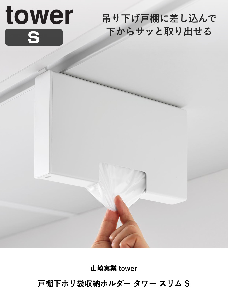 山崎実業 tower 戸棚下ポリ袋収納ホルダー タワー スリム S ( 4903208102483 タワーシリーズ ポリ袋収納 収納 ホルダー 戸棚下収納 ポリ袋 戸棚下 レジ袋 ストッカー レジ袋ストッカー レジ袋収納 レジ袋ホルダー ビニール袋 ) 【ホワイト】