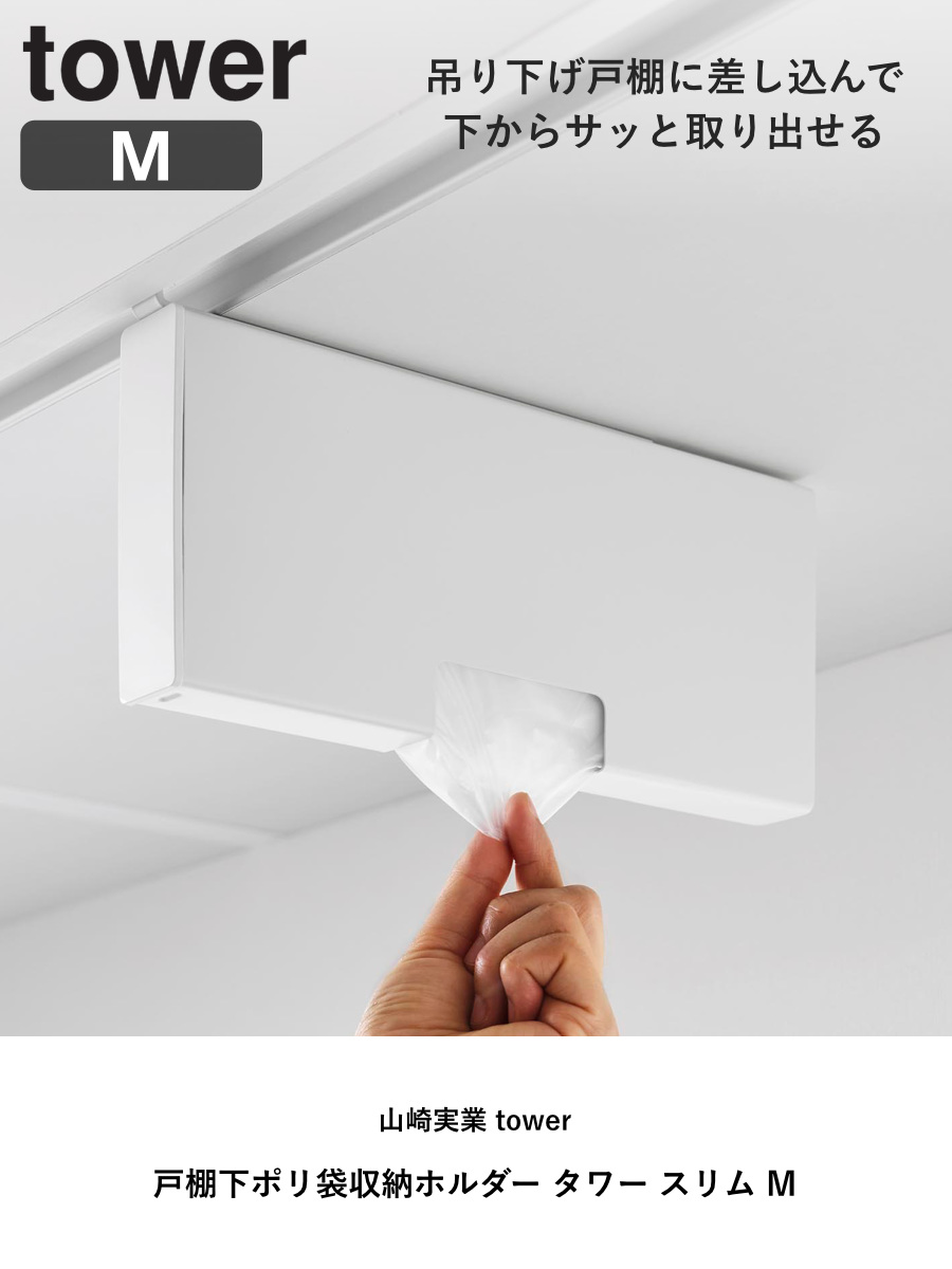 山崎実業 tower 戸棚下ポリ袋収納ホルダー タワー スリム M ( 4903208102506 タワーシリーズ ポリ袋収納 収納 ホルダー 戸棚下収納 ポリ袋 戸棚下 レジ袋 ストッカー レジ袋ストッカー レジ袋収納 ) 【ホワイト】