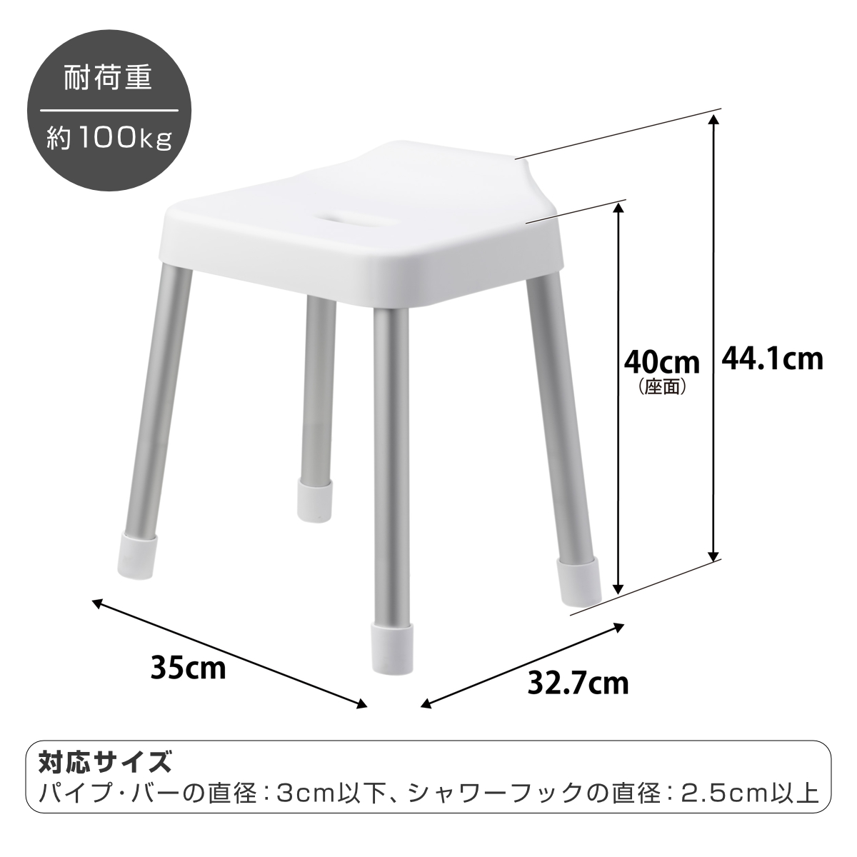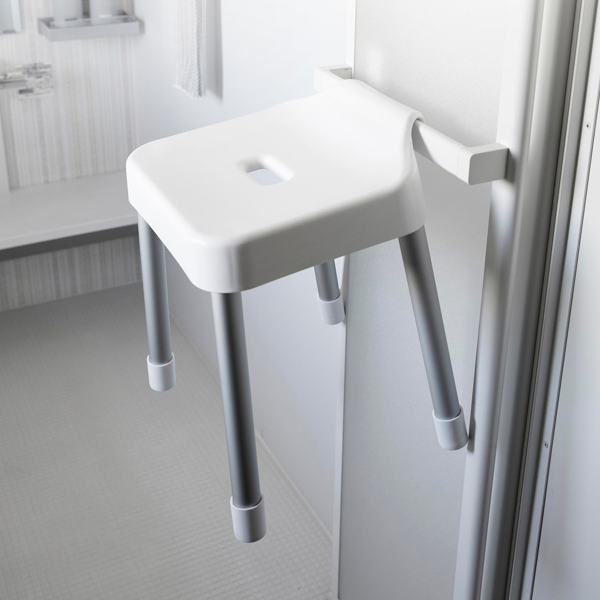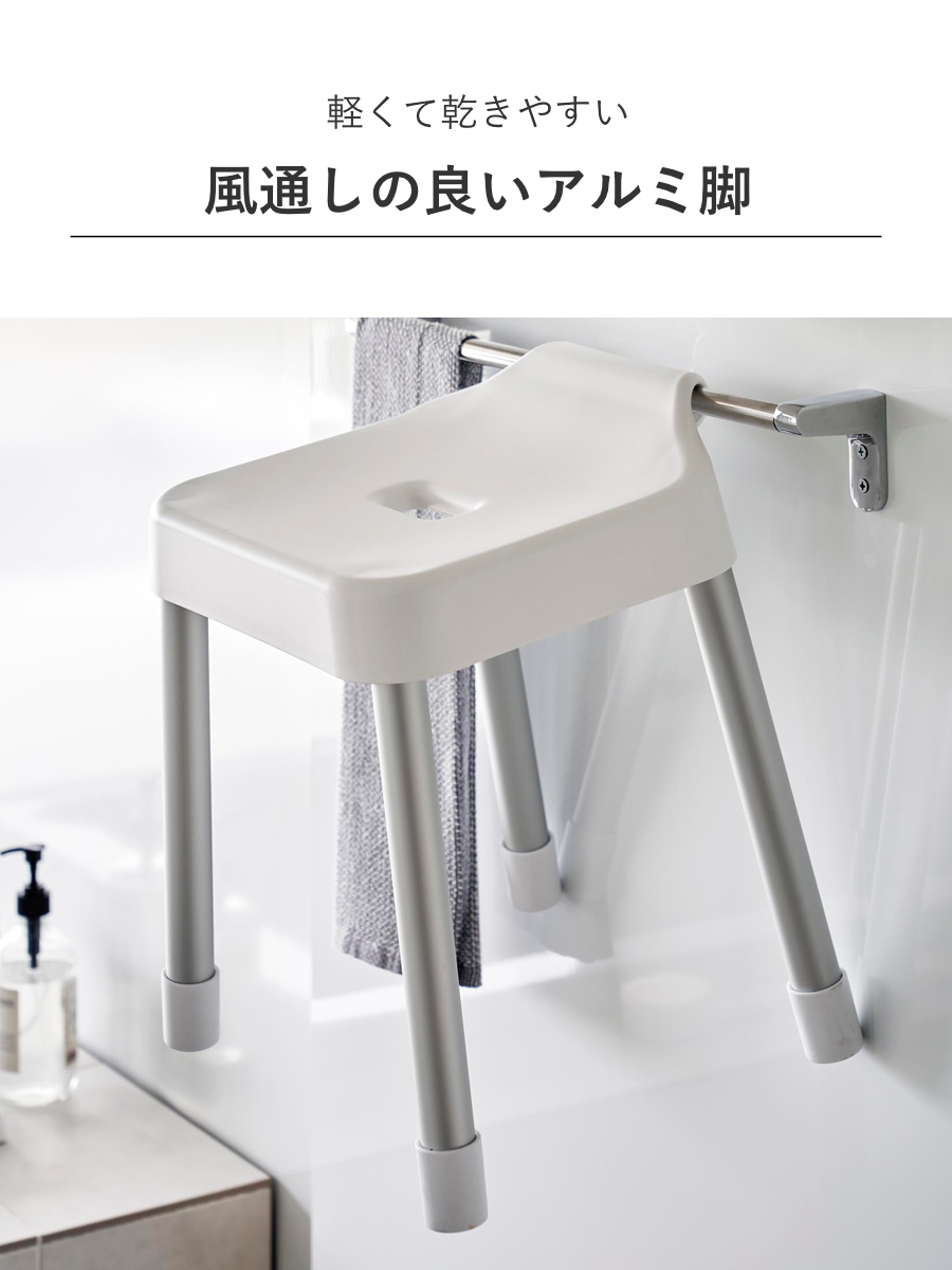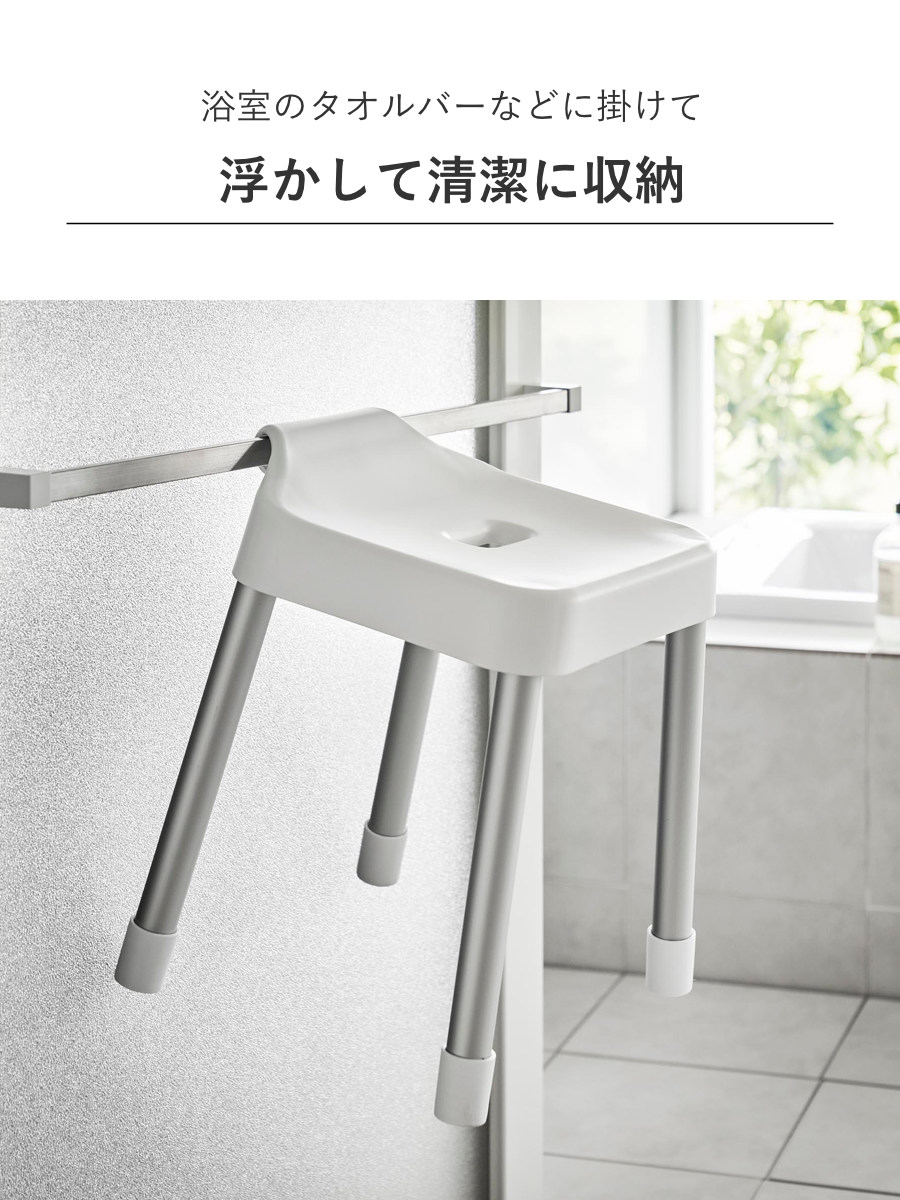 清潔さと使いやすさを兼ね備えた風呂イスです。使わない時に浴室のバーや浴室扉のハンドル、浴室のパイプなどに引っ掛けて収納できます。フックやプレート付きで浮かせ収納ができるので掃除もしやすいです。