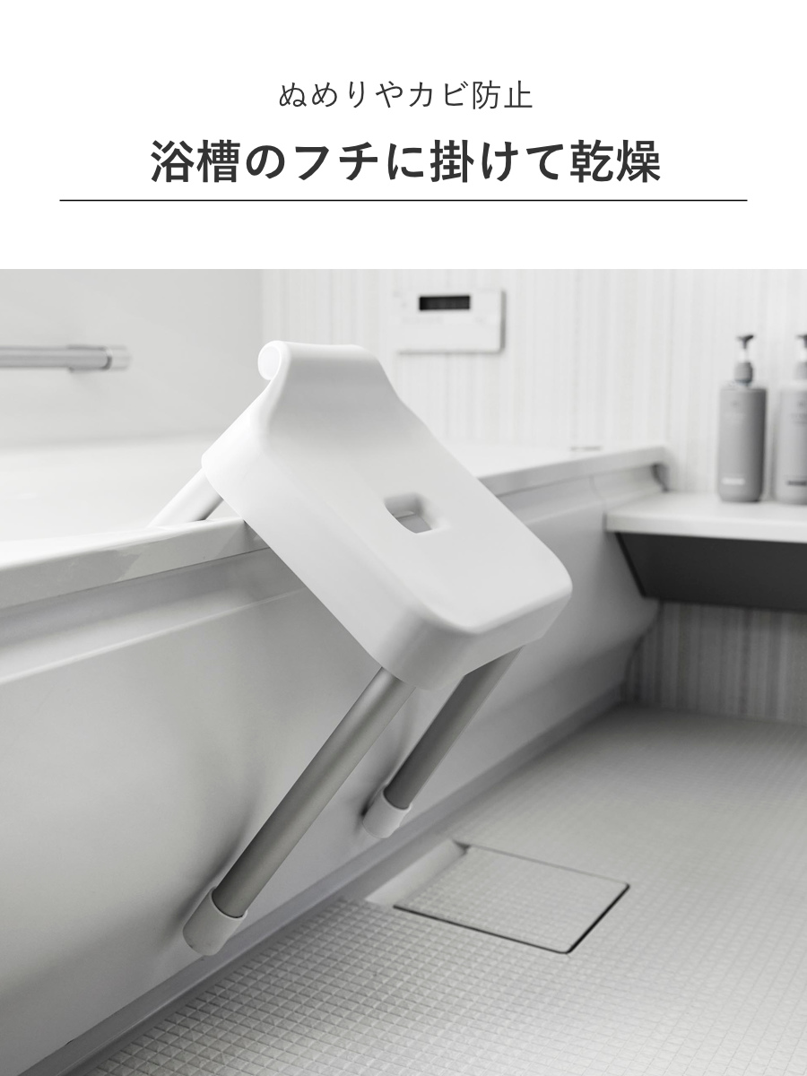 開口部を浴槽のフチに掛けると水切れがよくなり乾きやすいです。ぬめりやカビが生えるのを防ぎます。