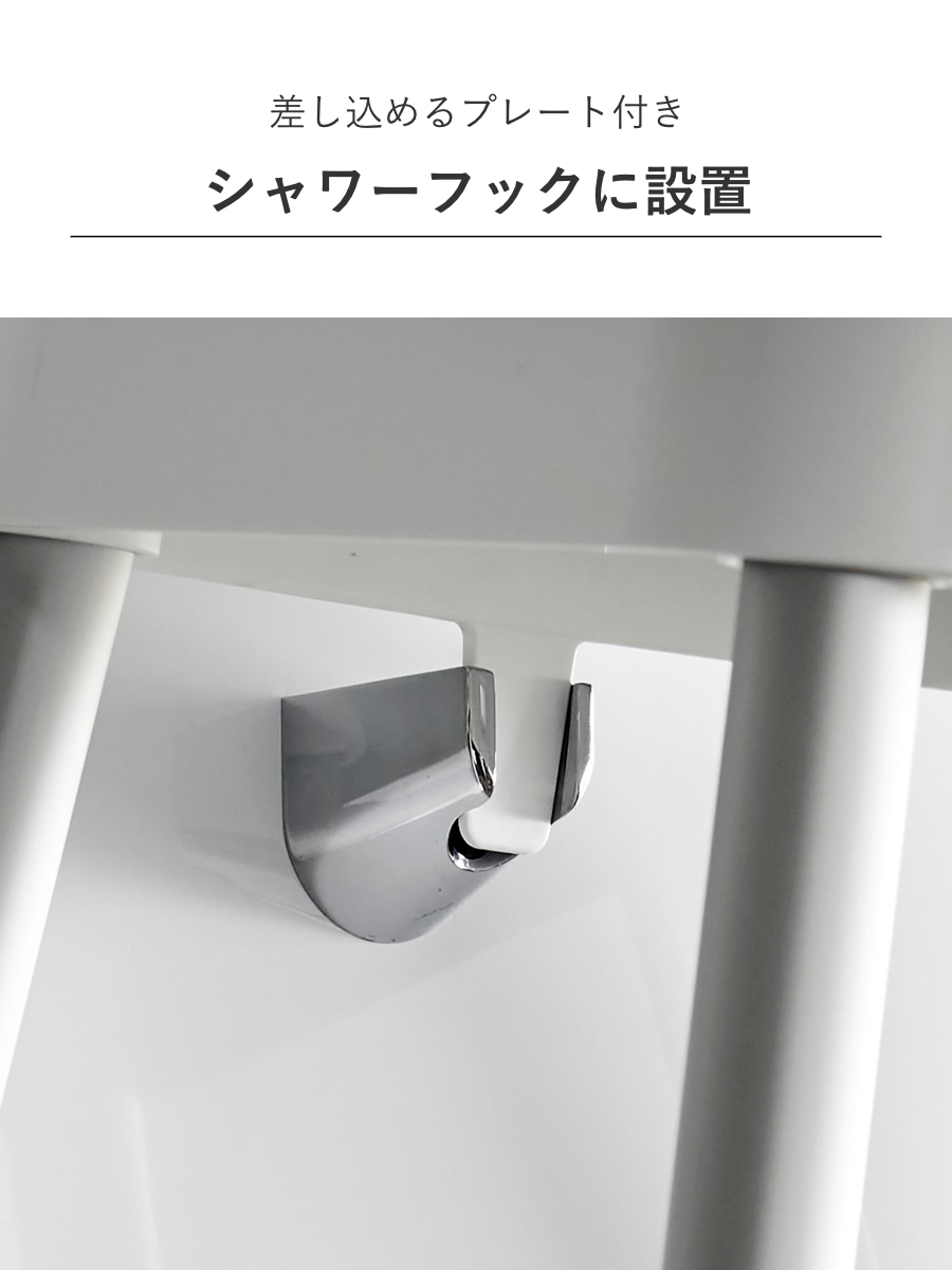 フックで引っ掛けるだけでなく、背面にはシャワーフックに差し込めるプレートが付いています。お掃除がラクにできます。
