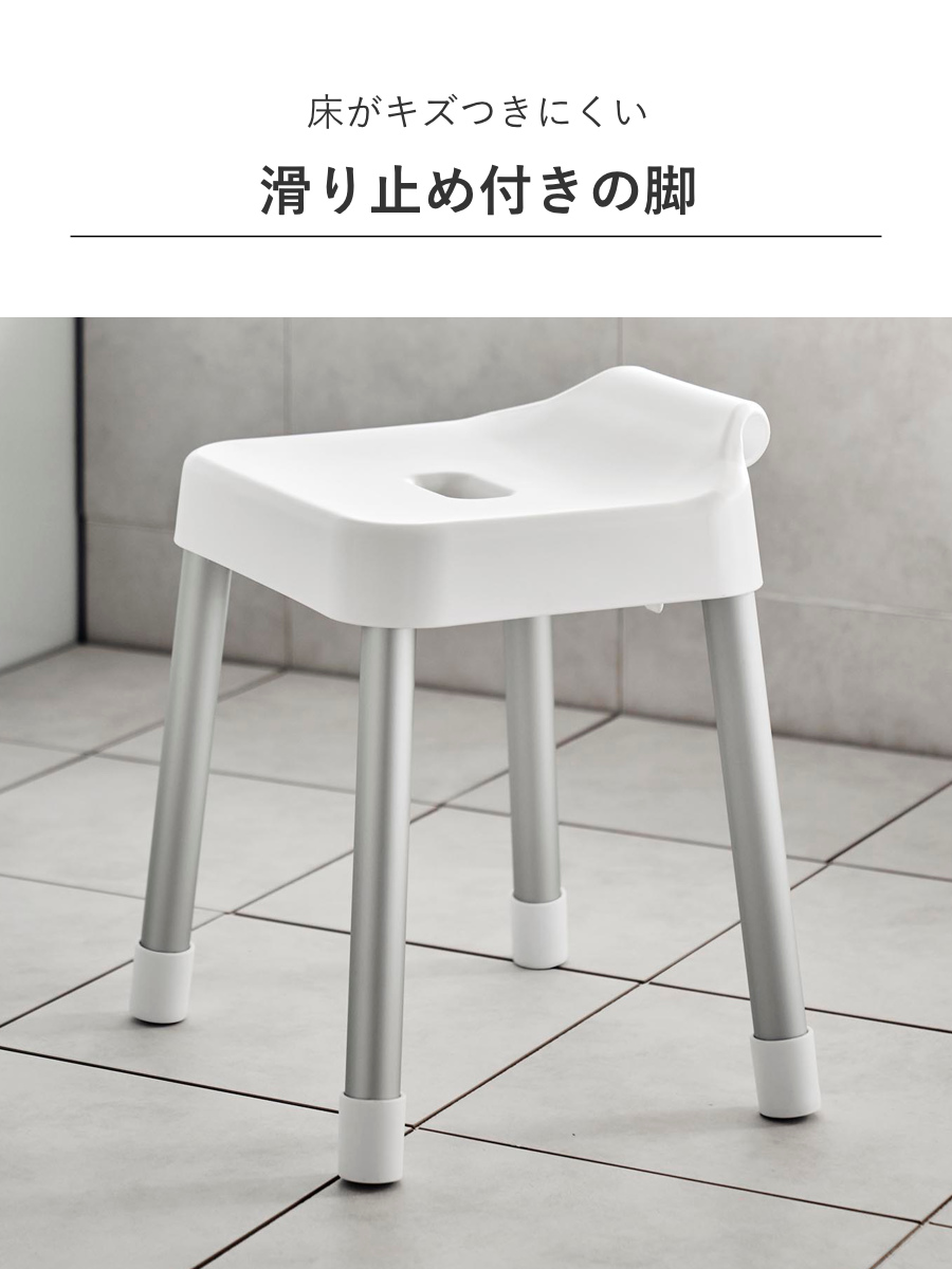 脚部分には滑り止めが付いているので、安心してお使いいただけます。また、浴室の床面がキズつくのを防ぎます。