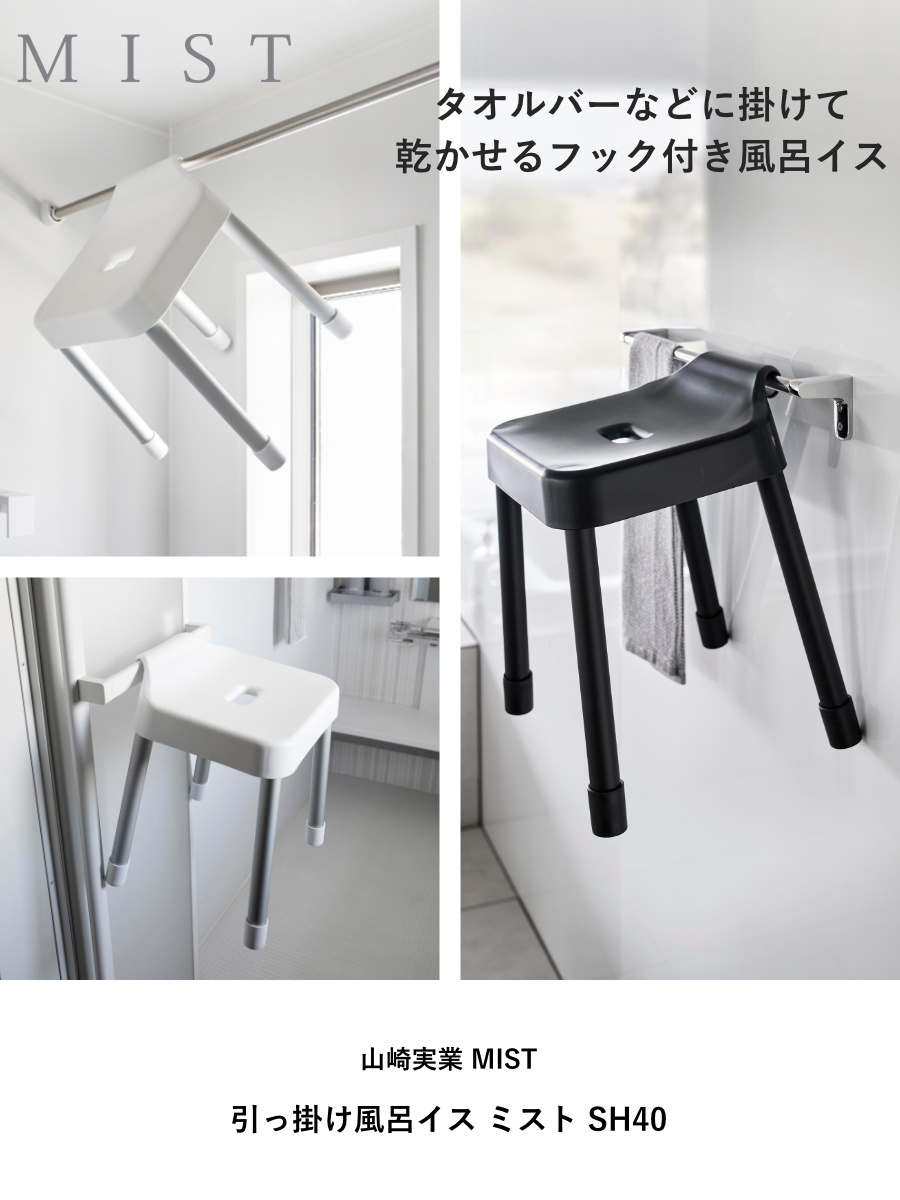 山崎実業 MIST 引っ掛け風呂イス ミスト SH40 ( 4903208102742 ミストシリーズ 風呂椅子 浴室 いす 椅子 風呂 イス バスチェア ひっかけ 引っ掛け 引っかけ 風呂いす お風呂 バスグッズ 浮かせる ) 【ブラック】