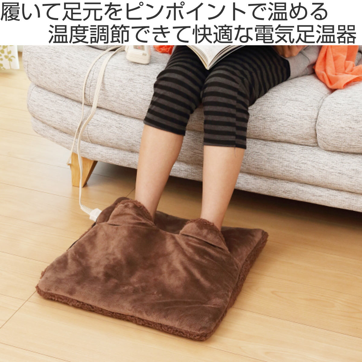 スリッパのように履いて足元をピンポイントで温める電気足温器です。部屋は暖かいのに足元だけ冷える...そんな時は足温器を履くだけで、つま先からかかとまですっぽり包み込んで足元を温めます。
