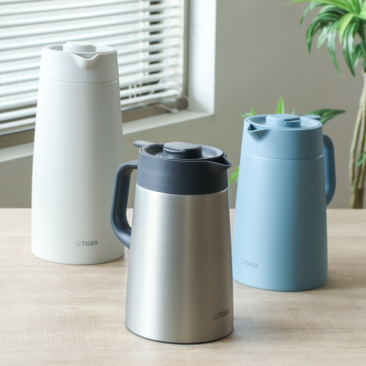 タイガー ポット プッシュレバー ( 1.2L ステンレスポット 魔法瓶 真空断熱 保温 保冷 卓上ポット 持ち運び ハンドル付き おしゃれ スタイリッシュ 北欧 モダン ) 【マットステンレス】
