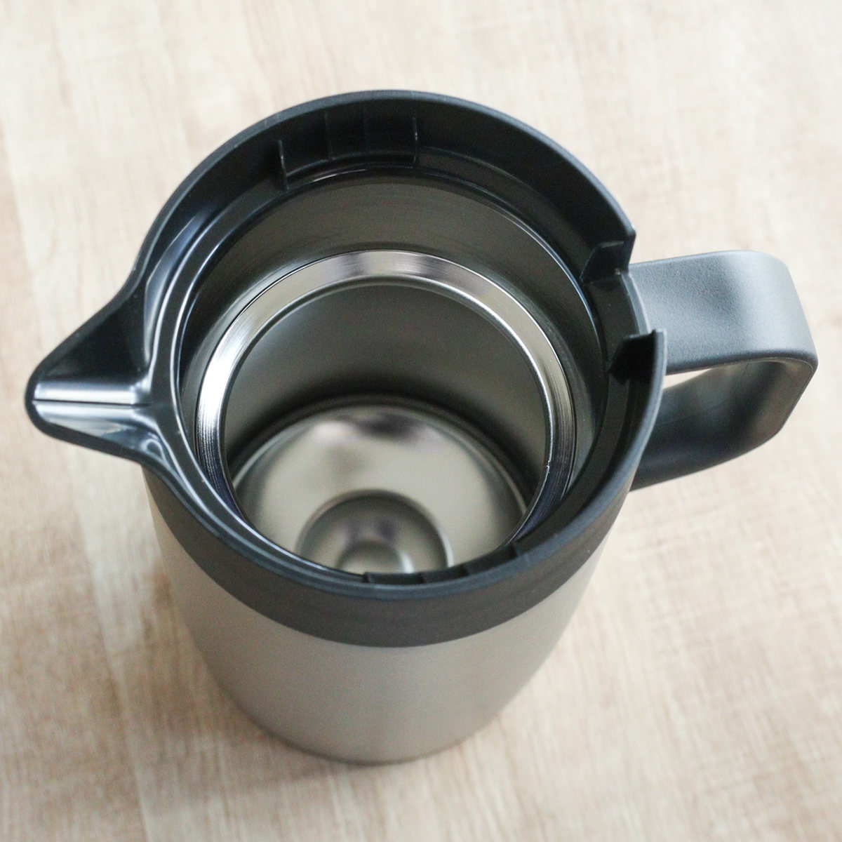 軽くて丈夫なステンレス製の真空二重構造により、高い断熱効果を発揮し、入れたての温度を長時間保ちます。朝入れたコーヒーやお茶はお昼になっても飲みごろの温度をキープし、電気を使わず省エネで、ダイニングやリビングでゆっくりと飲み物を楽しめます。