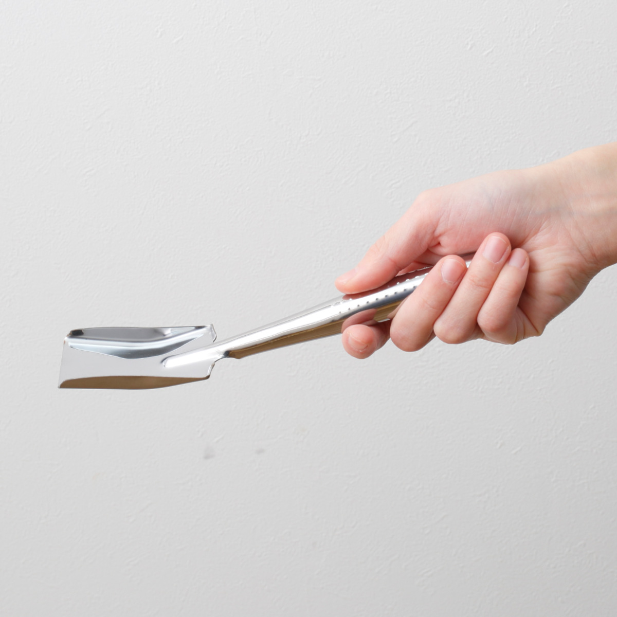 シンプルで使いやすい、ステンレス製のミニスコップ角型です。