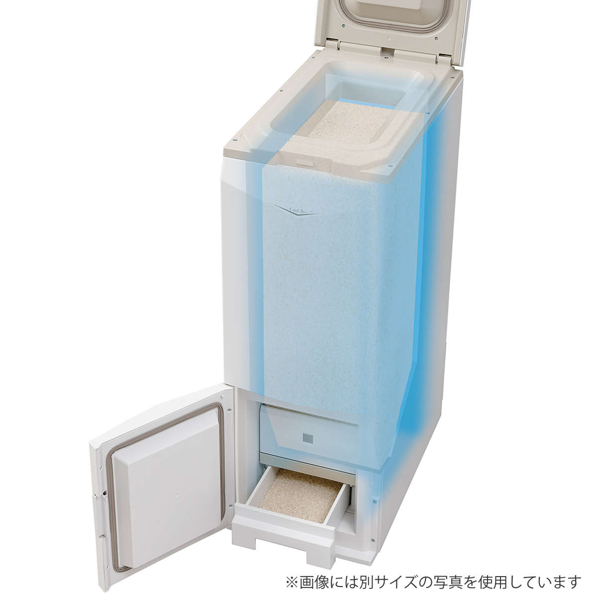 ●お米を約15度で保冷し、鮮度と美味しさを長くキープできる軽量米びつです。