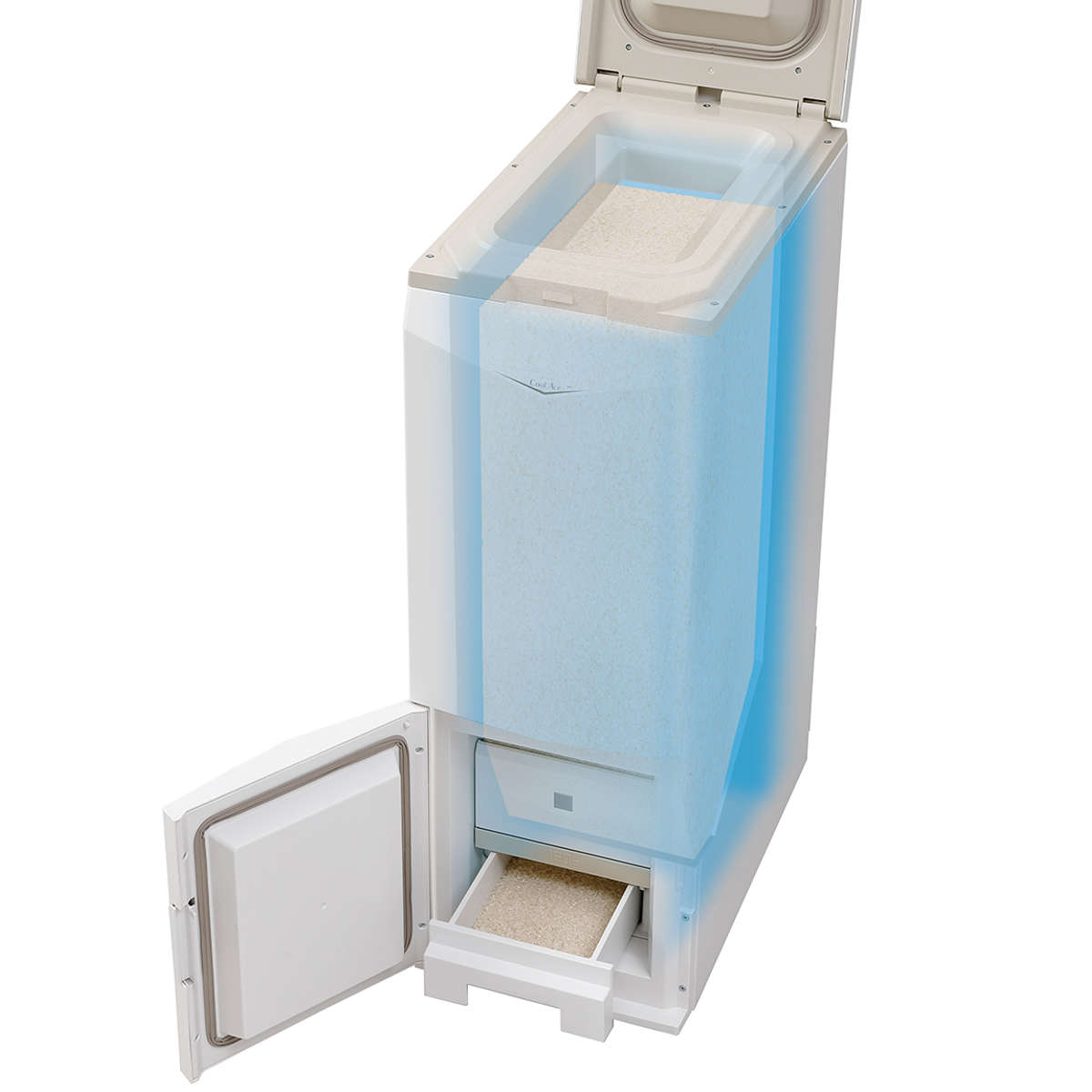 ●お米を約15度で保冷し、鮮度と美味しさを長くキープできる軽量米びつです。